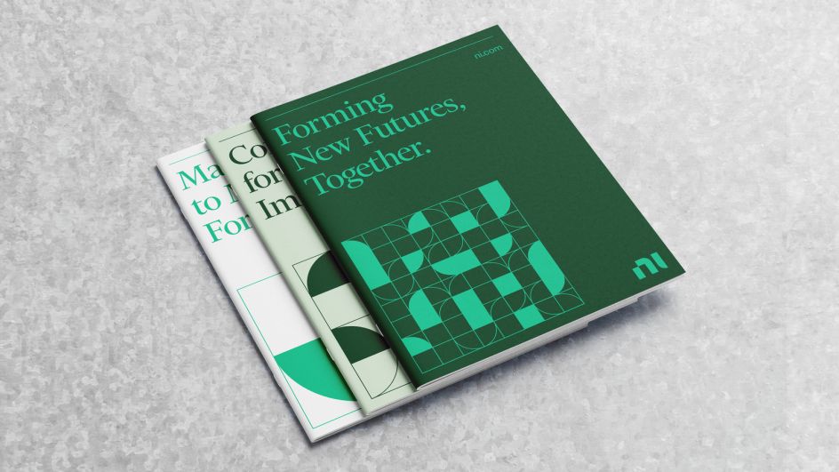 Photography of staff and customers is at the heart of the new branding, with people rather than products at the fore. A new earthier colour palette with a "friendly" green at its heart was introduced, alongside a modular logomark that "balances hard and soft to imply the balance between rationality and creativity, intellect and emotion, hardware and software that sets NI apart," says the studio. The new typography system also illustrates this balance through a mixture of serif and sans-serif type.