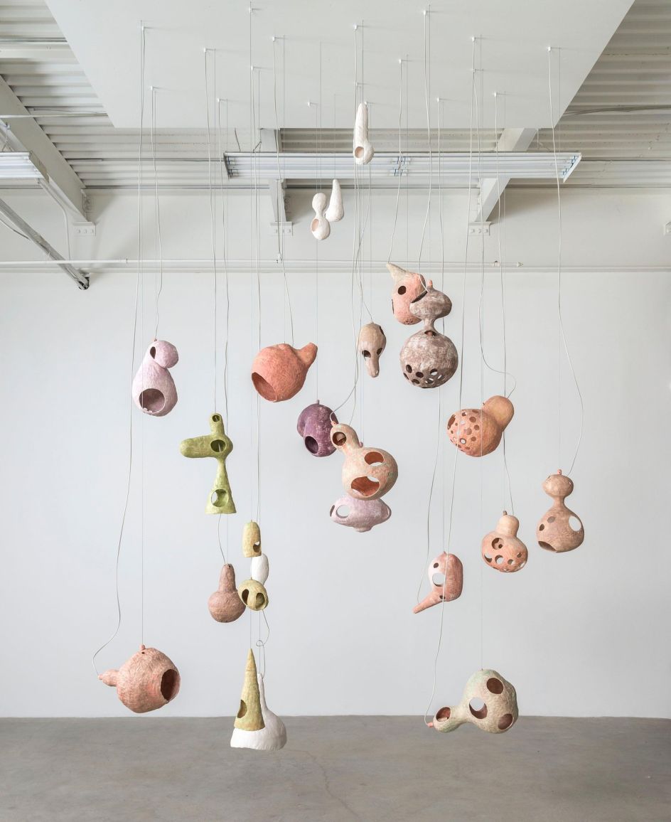 In essence, she has created living beings from mud and wires for her new exhibition, Spore, at Cooler Gallery in Brooklyn, which launches today and runs until 27 April 2019. Walk close to any of her hanging pieces and they light up, illuminating the room.