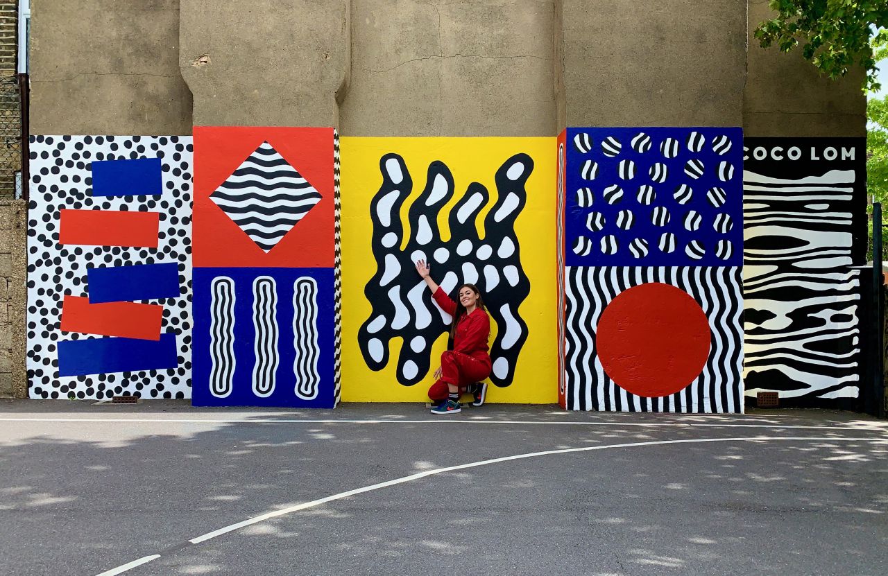 It's not the first time Coco, a Hackney resident, has collaborated with local institutions. Last year, she was asked by Hackney Arts to brighten up the route for 3,000 participants in the Hackney 5k Run, which involved chalk-spray-painting the grass track with colourful and playful designs underfoot. She has also designed murals for Shoreditch Studios and The Beer Shop in Peckham and was recently commissioned to paint six community hedge planters in Charlotte Road, near Old Street.
