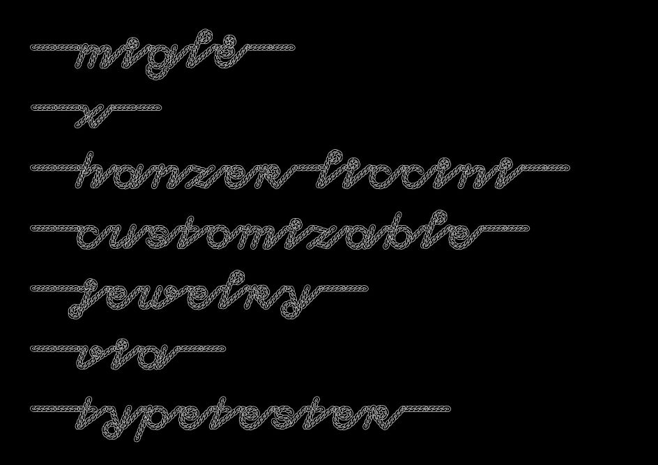 Seeking to continue its heuristic approach, considering the chain's inherent physical parameters, Hanzer Liccini demonstrated the mastery of its practice – forming a practical and methodological grounding to crafting something innately artistic and cultivated. It manifested in creating a programme that metamorphosises the digitally written character glyphs into continuous words and names, cast onto precious metal.