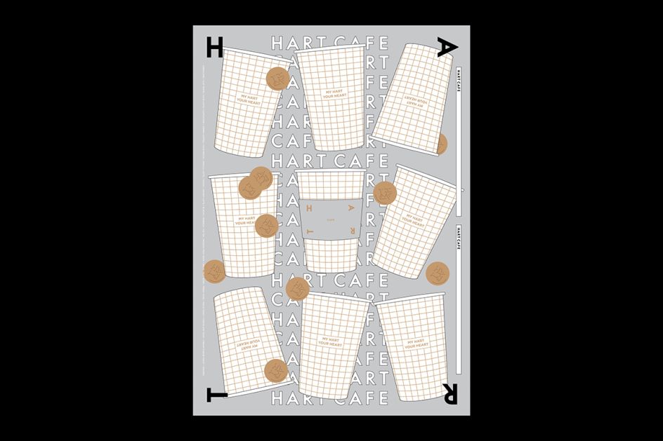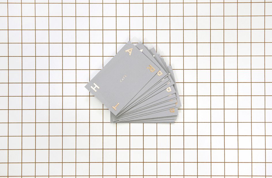 We seriously heart this brand identity for Hart Cafe by Korea-based, Triangle Studio. Combining simple, minimalist design with a colour palette that pairs grey with gold, the business cards, cups and menu are fresh and contemporary.