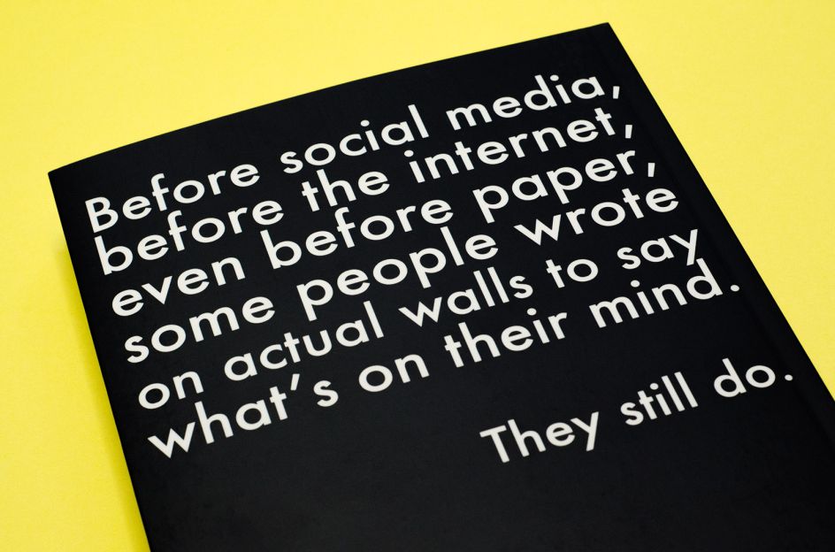 Often familiar and sometimes challenging, the catalogue shows recognisable symbols which range from hearts and hashtags to swastikas, alongside words in nine languages. From personal confessions to political statements, it spans across different cultures between 15 cities including London, Budapest, Lisbon, Athens, Paris and Seattle.