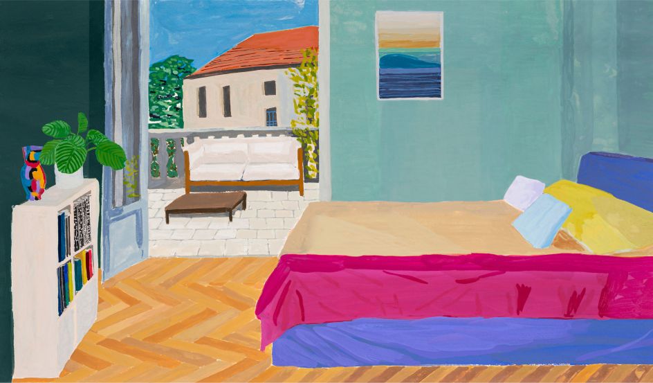 Glasfurd & Walker commissioned Milan-based artist and illustrator Clara Rubin to depict three imaginative bedroom spaces in vivid colours and interesting scapes. One overlooks some mountains at sunset, another is by the sea, and a third gives us a view of an Italian village. All are typical of Clara's style, who works mainly with gouache on paper and is inspired by her childhood. As she explains in an earlier interview with Creative Boom: "Being Italian, I like to bring my influence, background and heritage to each piece of work alongside my emotions. I feel most inspired when a subject is close to me, and I have a connection and bond. Places like where I used to visit in my childhood hold fond memories for me and inspire my work."
