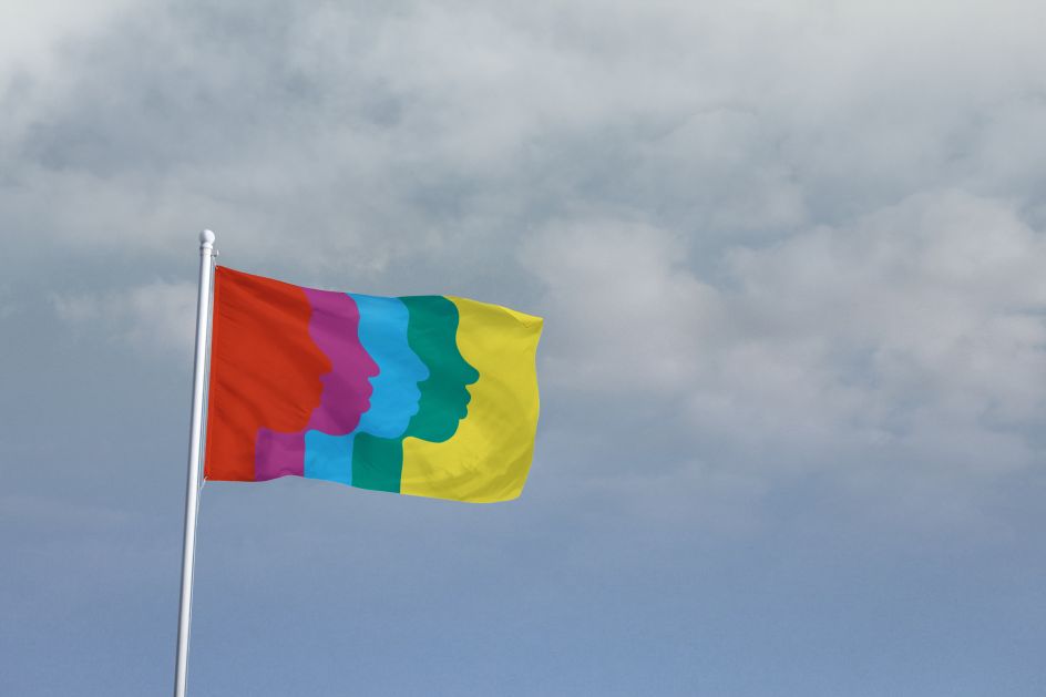 The silhouette is offset in five colours – a palette developed in conjunction with exhibition designer Yinka Ilori – each reflecting one of the themes addressed in Get Up, Stand Up Now: Motherland; Imaginary Landscapes; Dream to Change the World; Masquerade; and Mothership.