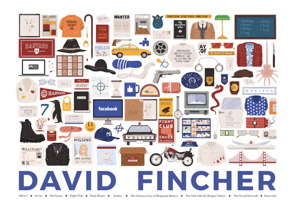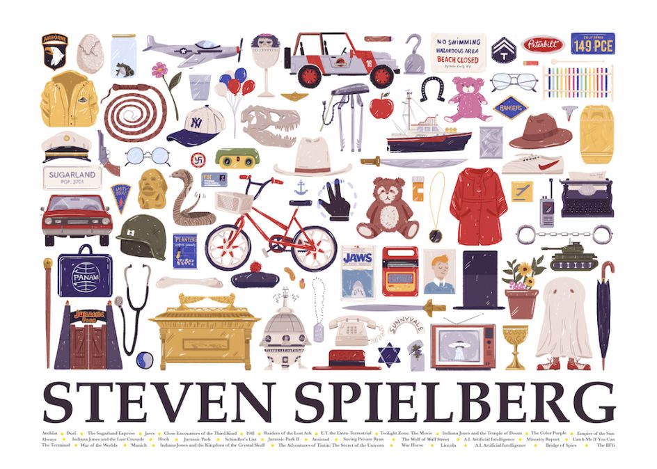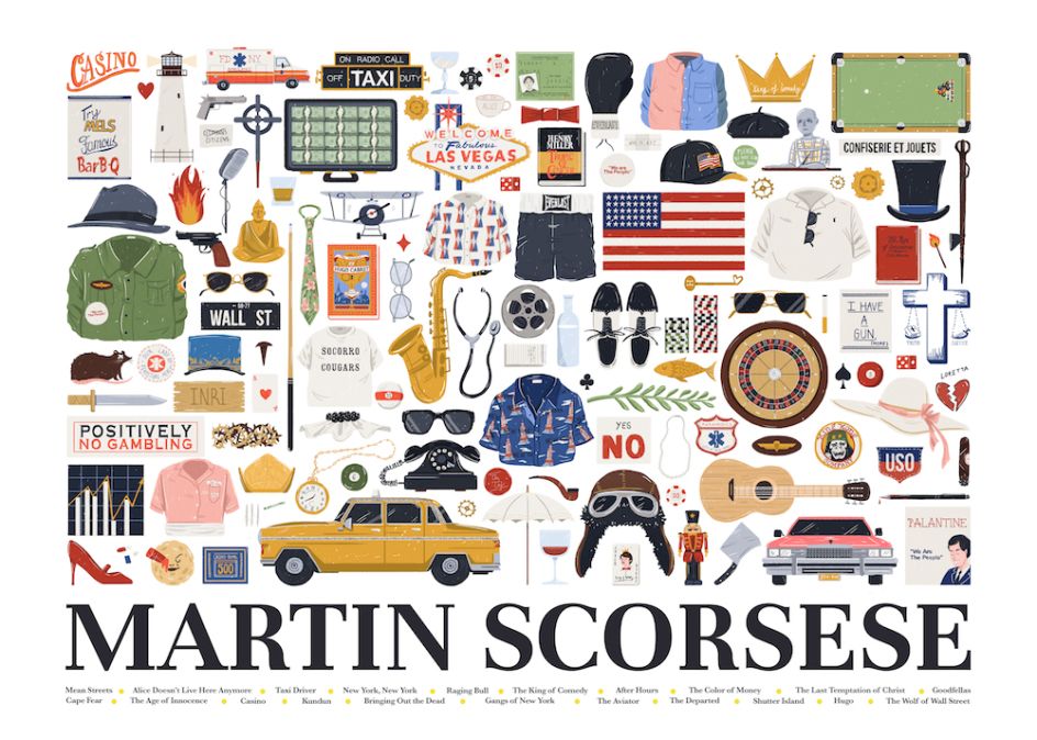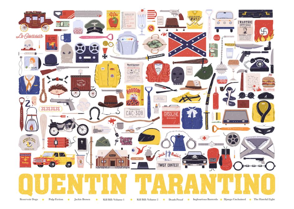 Using instantly recognisable and iconic props, Maria offers an overview of each director's style in her characteristically colourful designs. The collection includes 12 original artworks inspired by Steven Spielberg, Quentin Tarantino, Martin Scorsese and David Fincher, to name a few. Discover more at www.curioos.com.