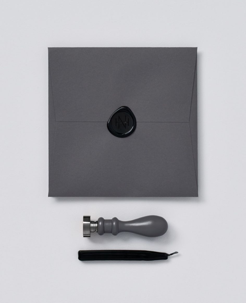 "The identity was designed to add mystery and intrigue to the brand, it included both a monogram logo mark and a separate logotype, to give a flexible branding system that could be applied across all communications. The corporate stationery uses GFSmith Colourplan, with gunmetal foil, letterpressed elements and hand-finished edge painting. The stationery uses different shades of grey and small elements of black, for a dark and sophisticated look."