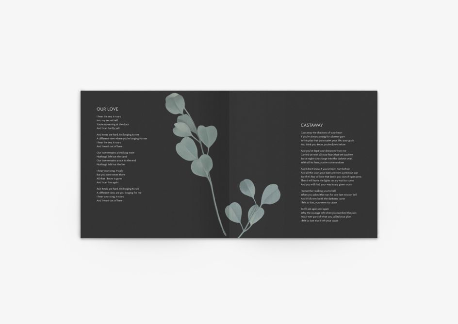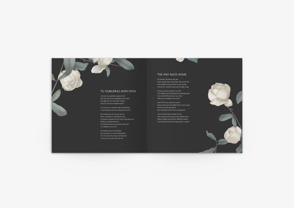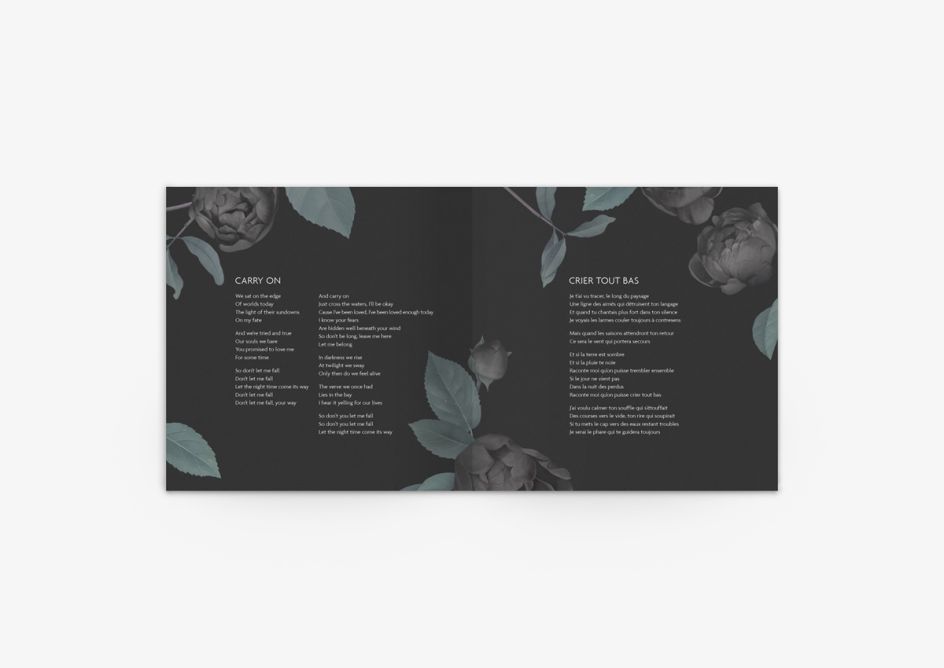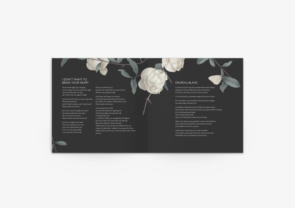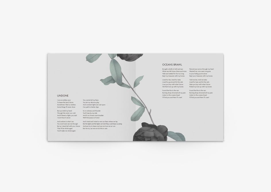 Using soft, muted tones as a backdrop against appealing black roses, the cover and accompanying sleeve adds great contrast and depth to the album's identity, as it includes everything from song lyrics and credits to discography.