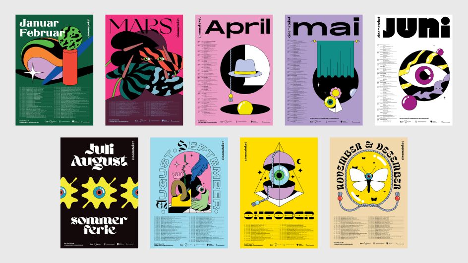 Oslo design studio Hugmun has created this wonderful, acid trip poster series for Cinemateket Trondheim, to act as a unique programme of events for the 25-year-old arthouse cinema in northern Norway.