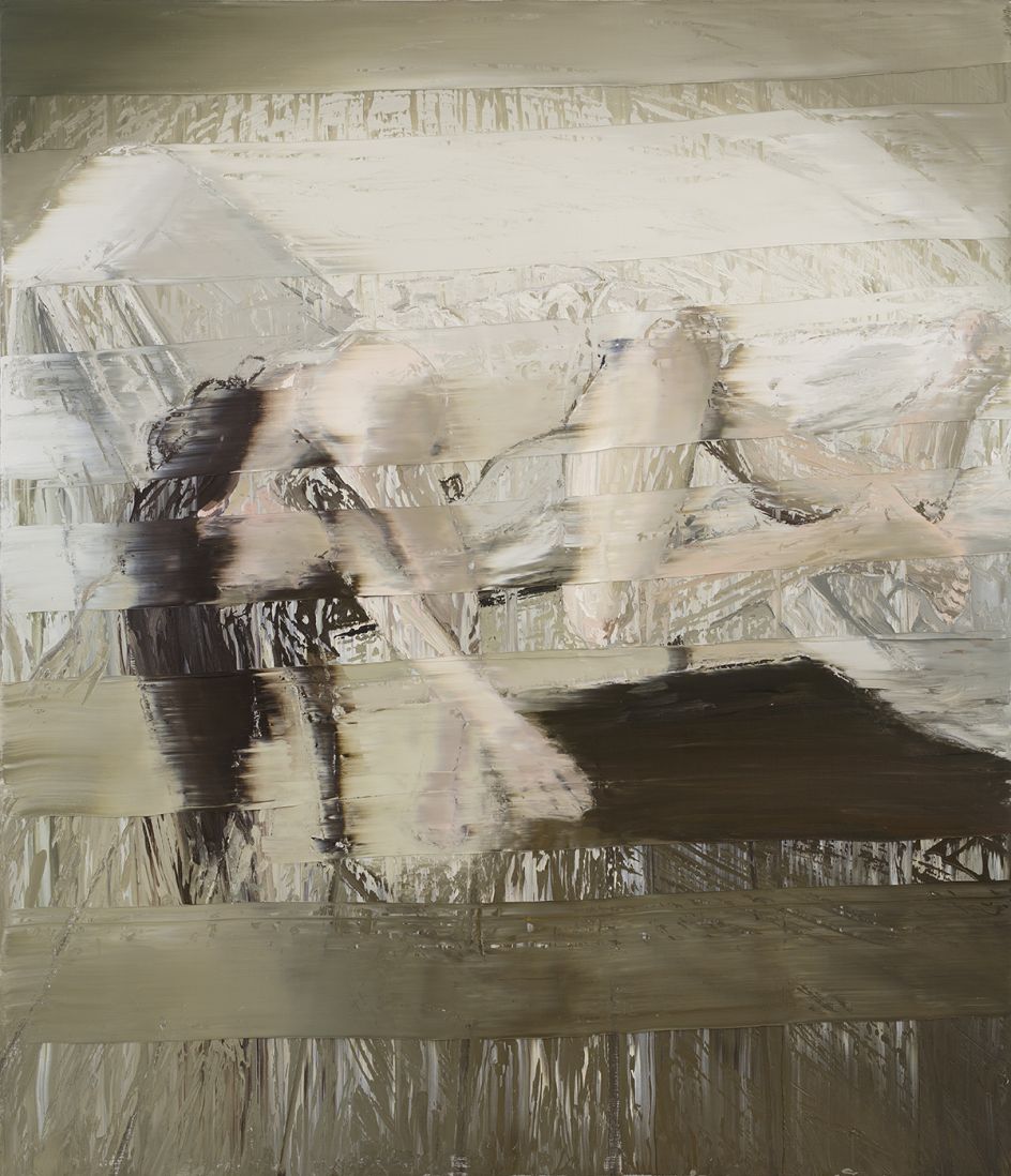 Denzler developed his own visual language through the exploration of distortion and movement in the representation of the human figure. His paintings are reminiscent of images rendered by a paused VHS tape or other digital glitch and often depict people in their intimacy all the while remaining anonymous.