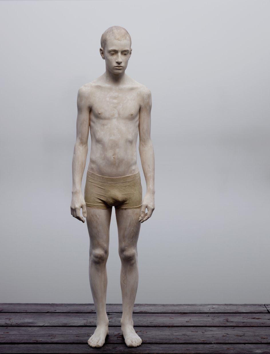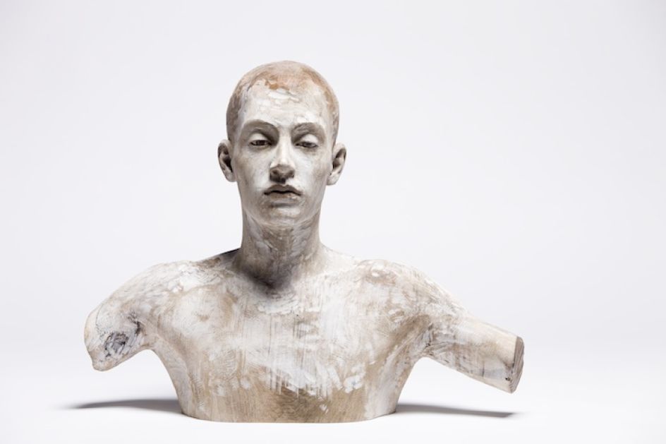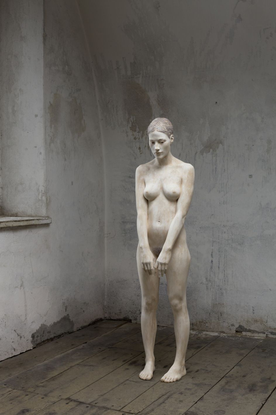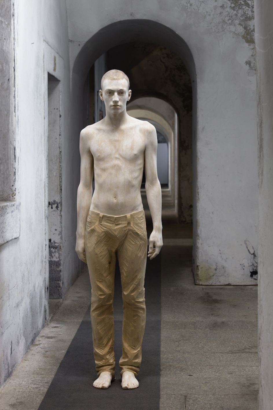 It is for this reason that Walpoth uses semi-translucent paint to coat his works, ensuring that the wood grains stay visible. Each sculpture offers a serene view on humanity, as all of the figures seem to be pensive and lost in thought.