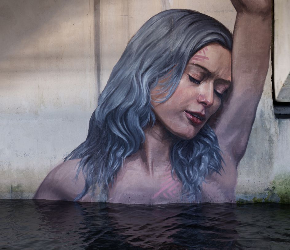 In his latest series of street art, Hulu continues to paint beautiful women submerged in water, but he has also started to venture further afield onto dry land, finding interesting spaces to apply his portraits. Here are just a few snippets. To discover more visit byhula.com.