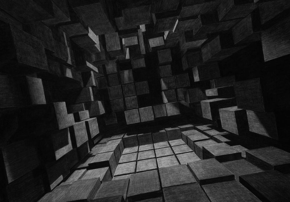 Key elements to the pieces include grids, geometric shapes and desks. Together, they present a fragmented view of reality that is in some way familiar, and in another alien and sterile. Discover more at behance.net/levivanveluw.