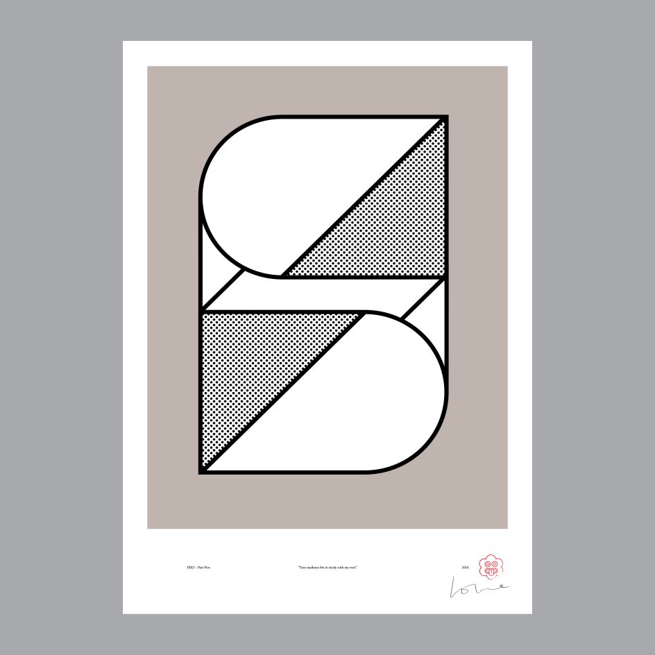 Known far and wide as Supermundane, Lowe is, of course, talking about turning his favourite song lyrics into abstract forms. Made for a closing exhibition in Belgium last year called, I Know It’s Over.