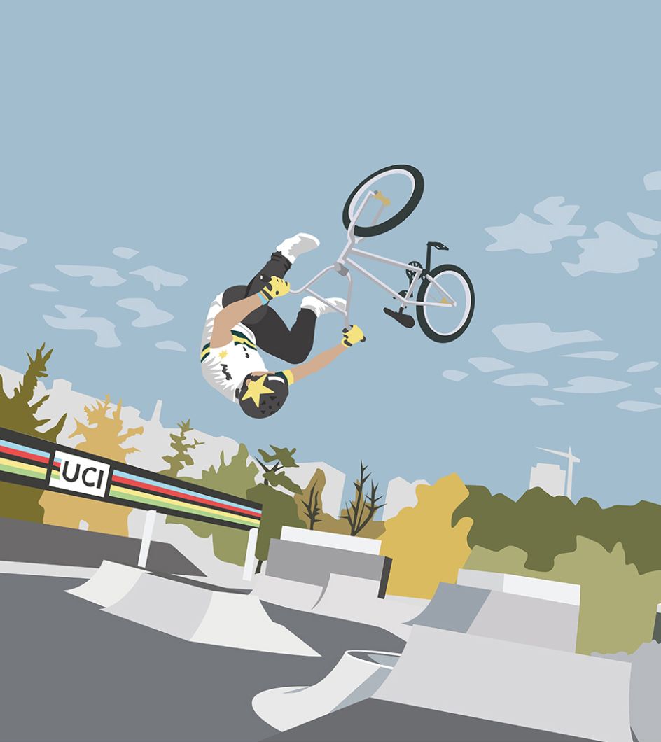 "Initially, the brief was to create one illustration in a montage form showing all the different cycling disciplines," Jen explains. "But I was unsure how this would work especially showing people close together with the current social distancing guidelines. So it got rebriefed and one illustration turned into 11 to go out on all their different cycling channels."