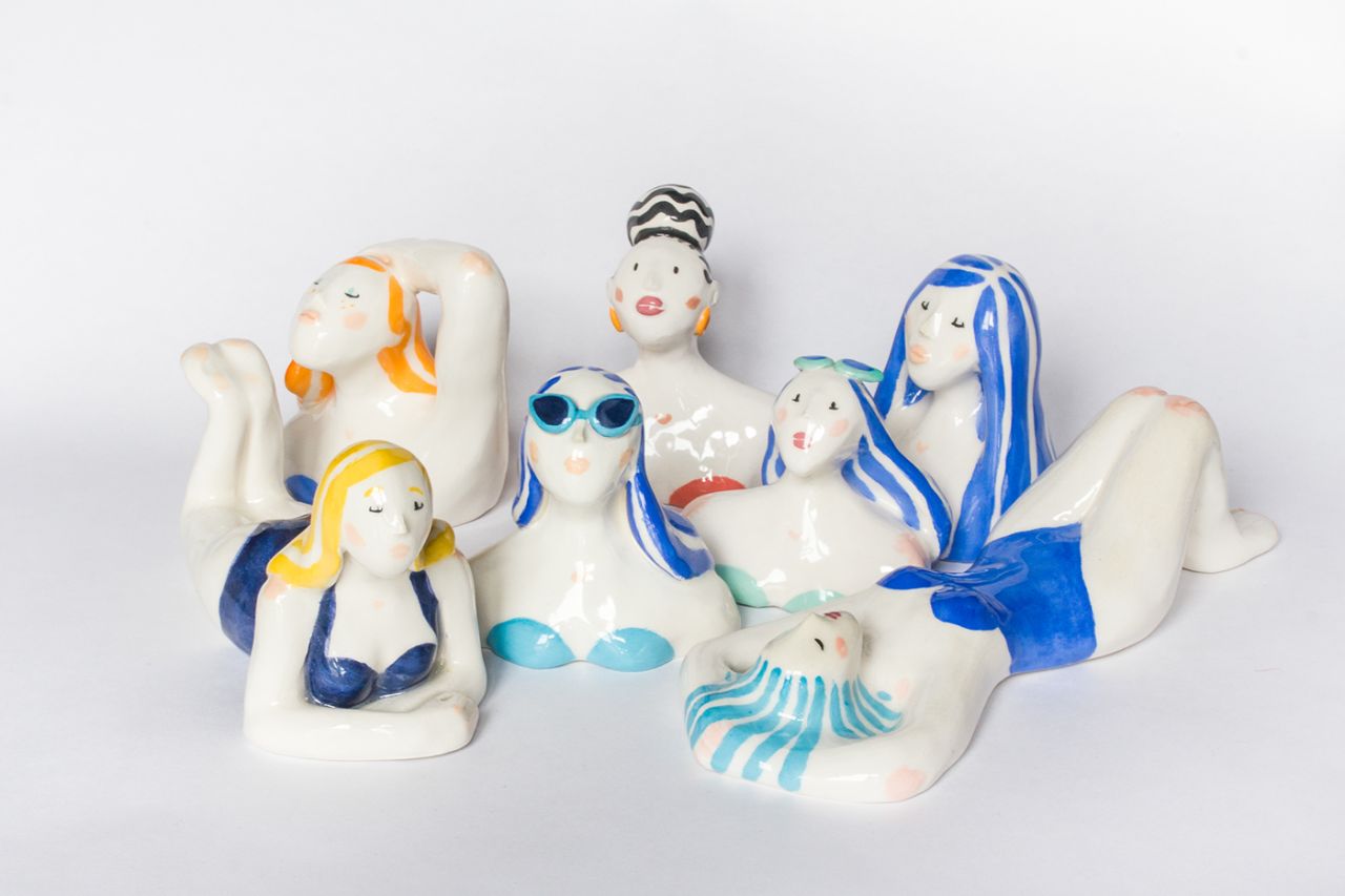 When French illustrator Alice Des isn't freelancing or creating comic books, she likes to indulge in a little pottery, in this case, crafting ceramic bathing beauties that follow her usual trademark style.