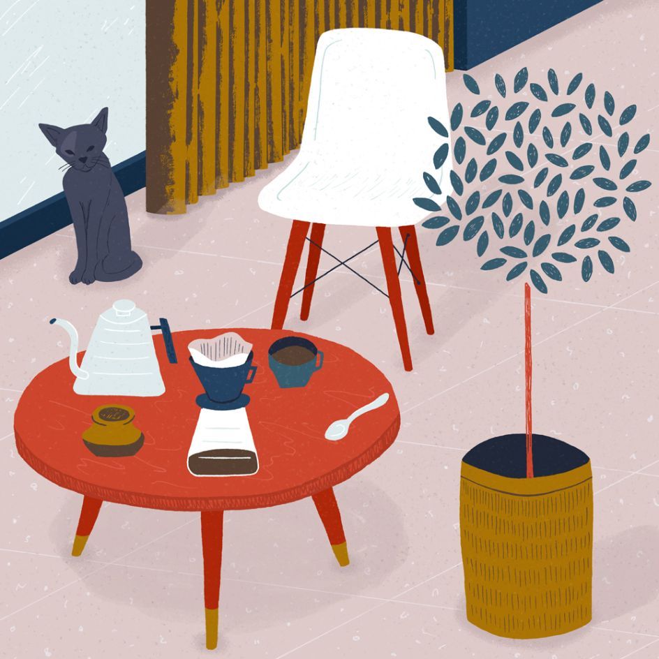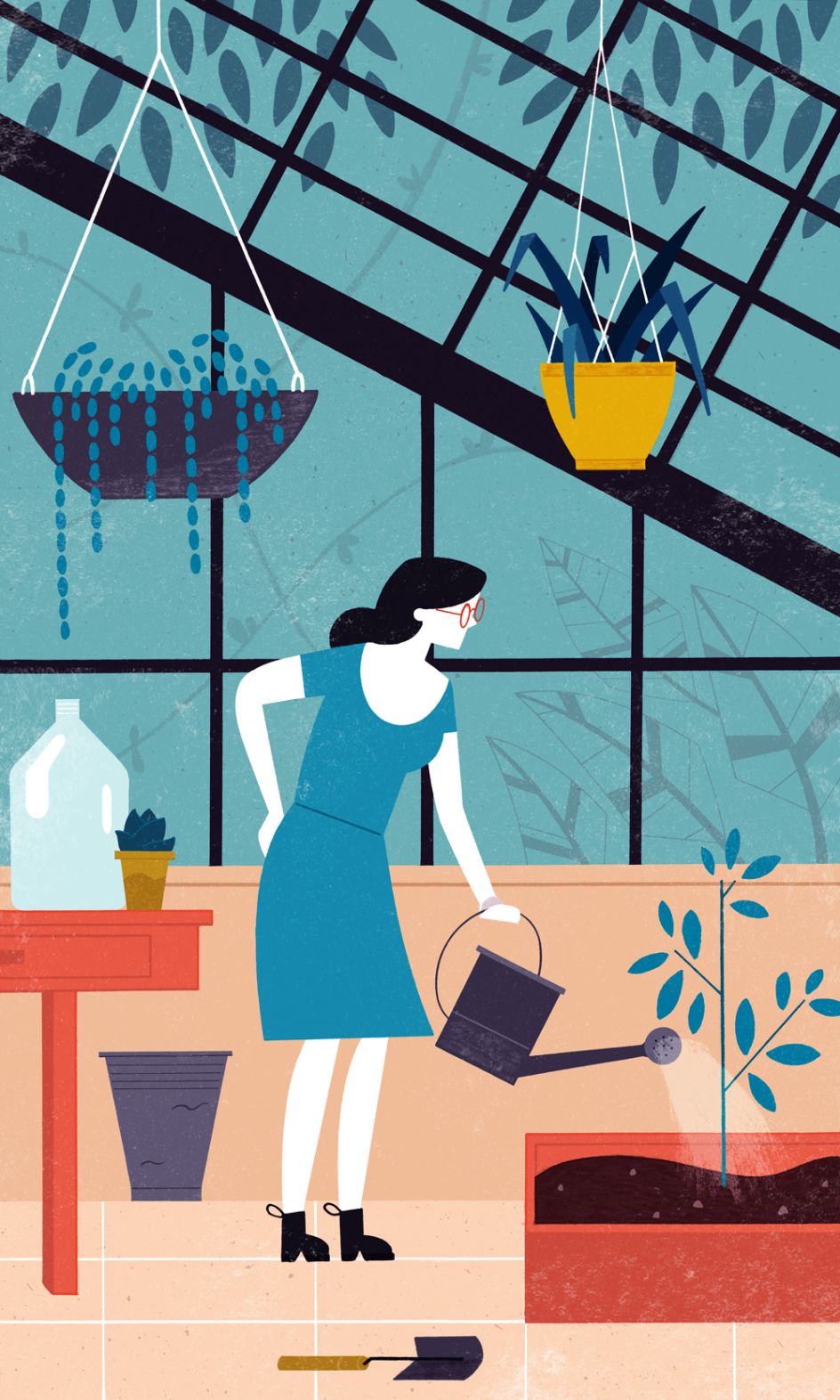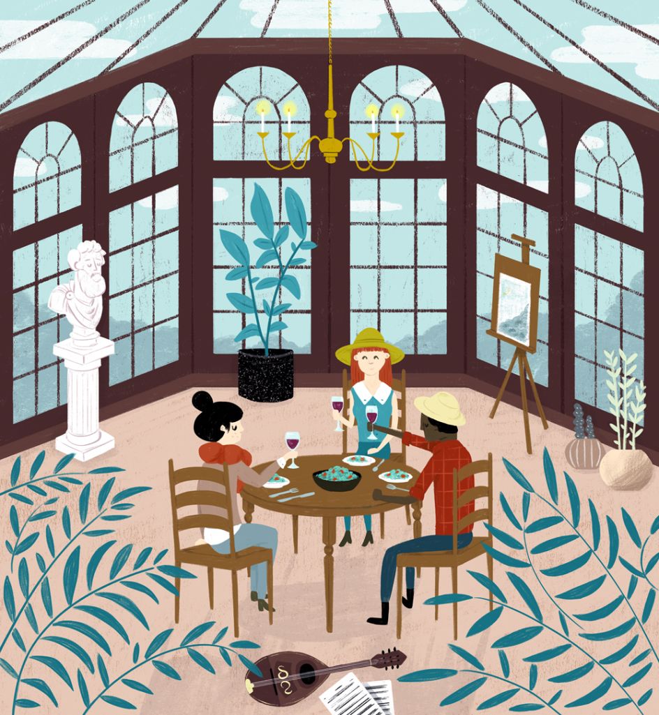 "My work is heavily inspired by botany, architecture (which I studied in college), and literature," explains Mostov. "Many of my illustrations feature people doing everyday things or celebrating day-to-day life. I like to explore the intersection of digital and analog mediums, taking advantage of both technologies' precision and the happy accidents which occur in the real world."