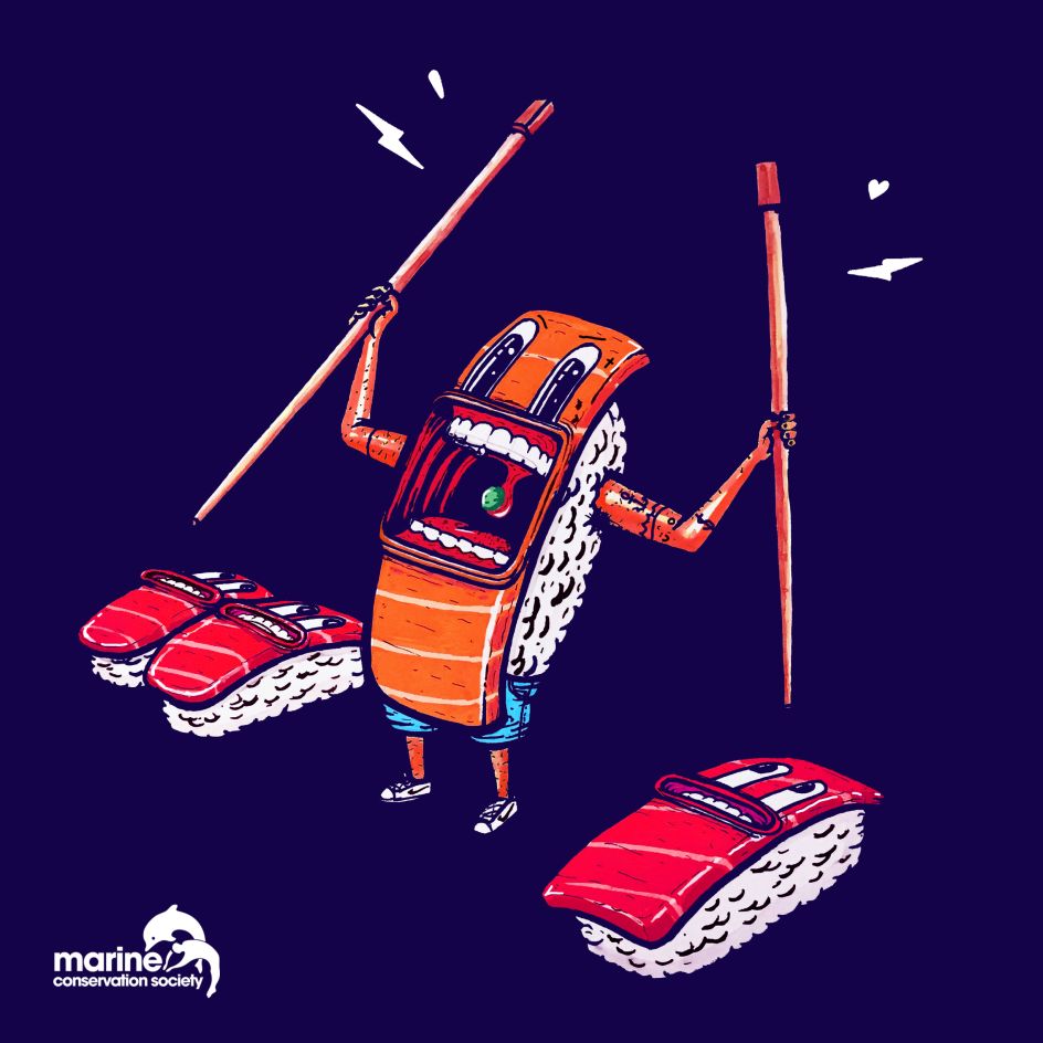 From classic paintings that undergo a disturbing makeover (Mona Lisa is now definitely grinning) to the addition of disturbing teeth on everyday objects such as cigarette packets, stereos and alarm clocks. There's even a piece of sushi that has sprung to life, with a huge gaping mouth revealing a dash of wasabi on the character's uvula. Gross.