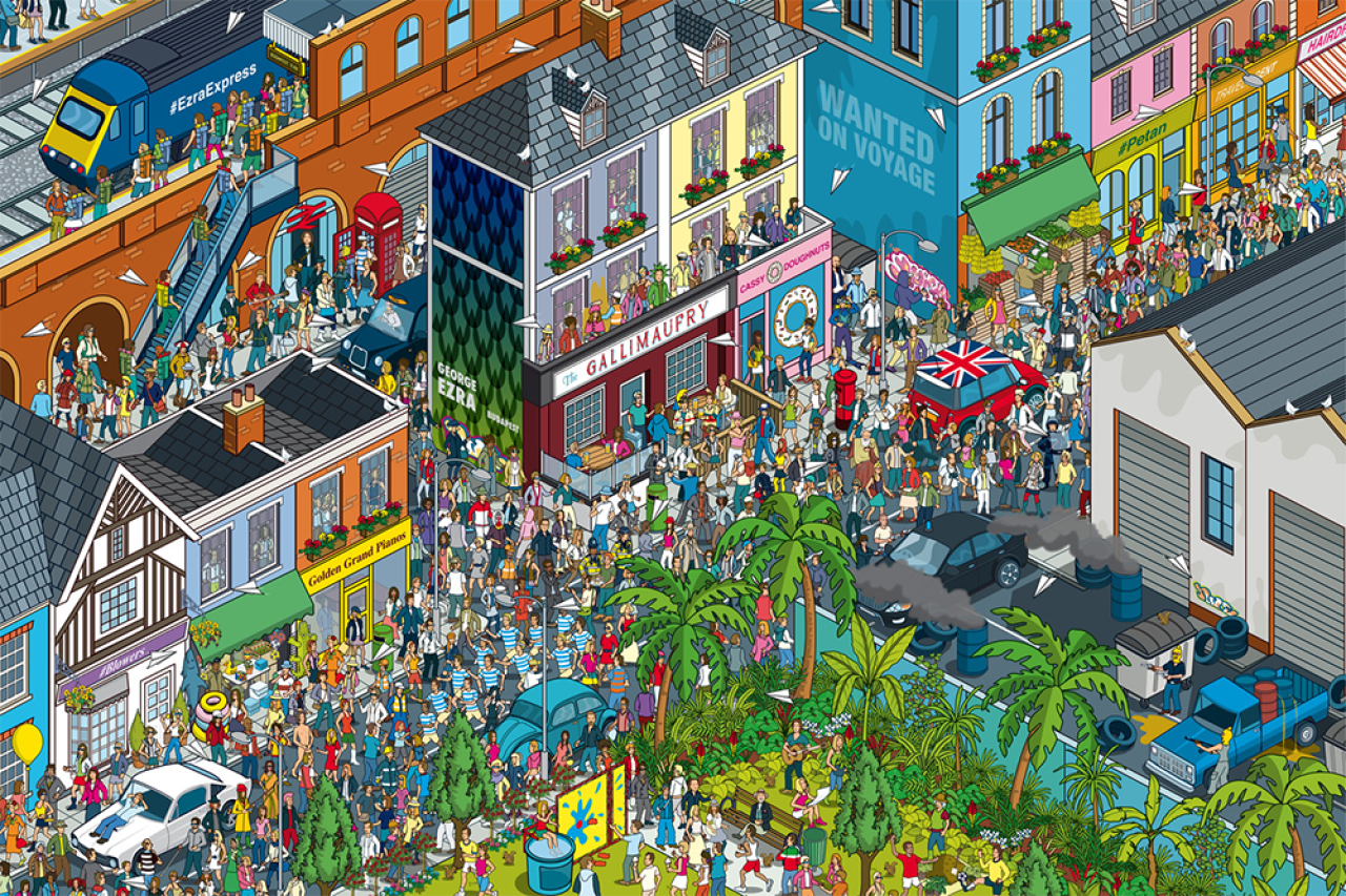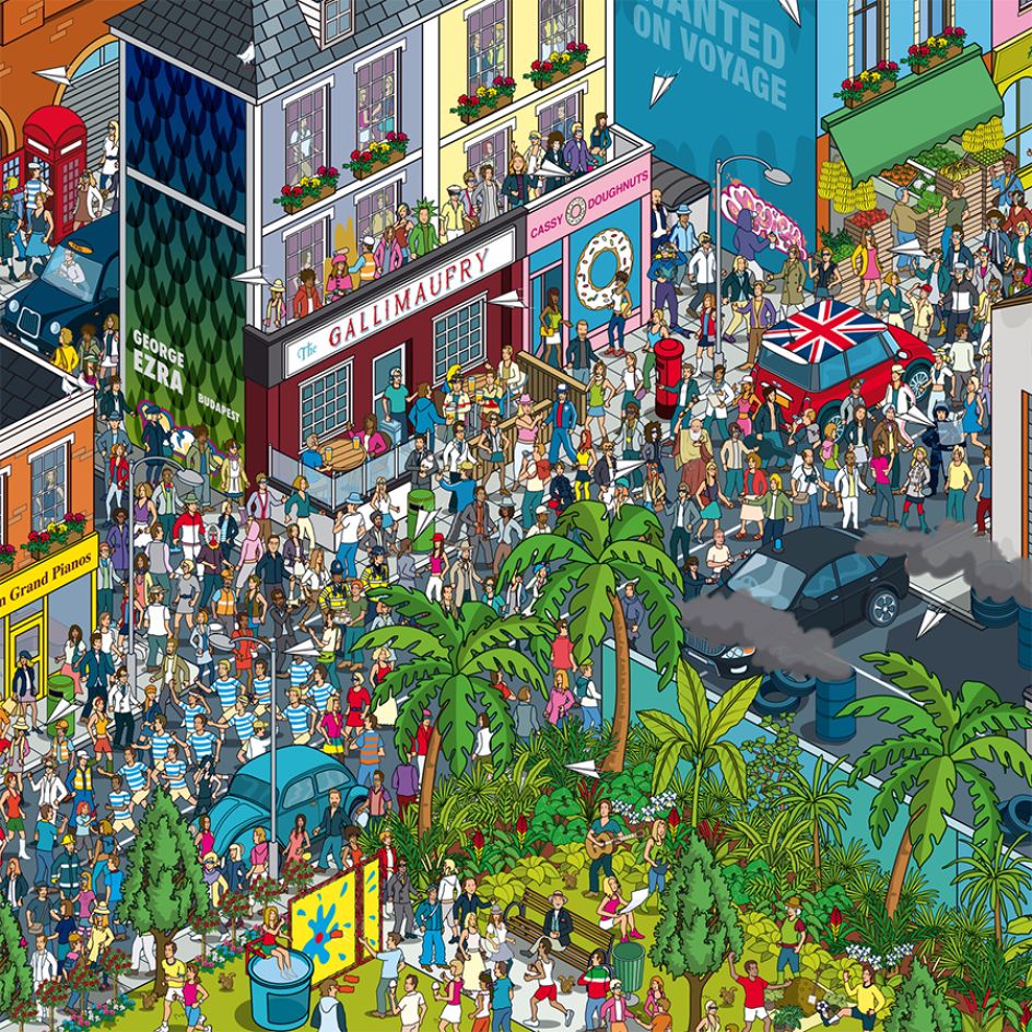 Can you find George Ezra hidden in this hilarious grown-up Where’s Wally scene? Creative Boom caught up with the man who put Ezra in the picture: bestselling artist and former chair of The Association of Illustrators, Rod Hunt.