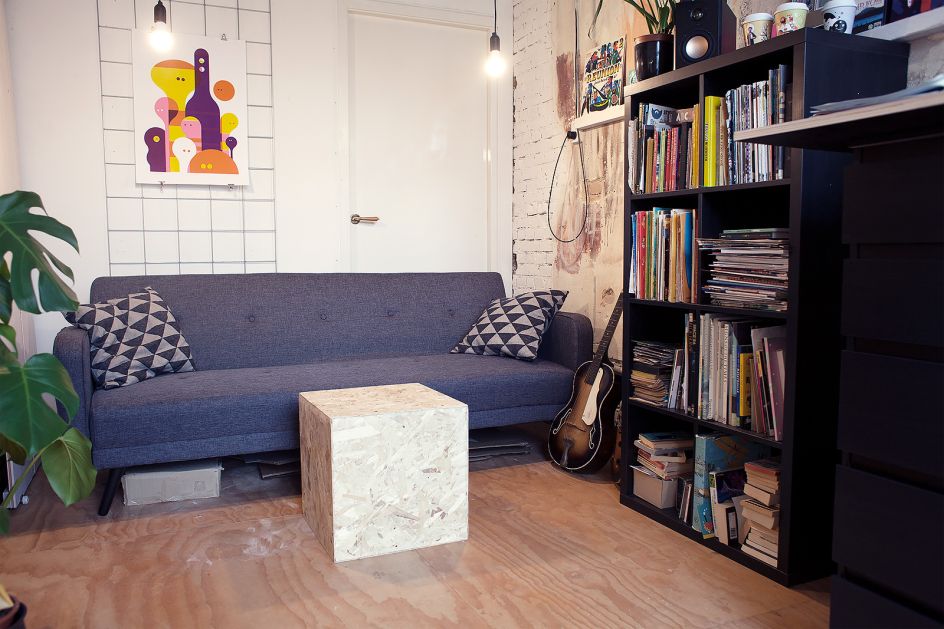 I have set up a studio right next to the living room of our family home in the centre of an old and small town in the north of the Netherlands called Meppel. The previous owners ran a traffic school in this room and besides taking down a kitchen and a wall, we didn't do a whole lot to the studio when we moved in.