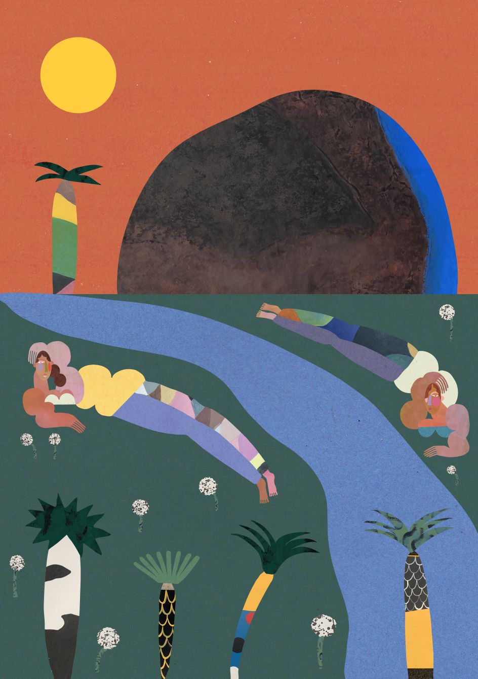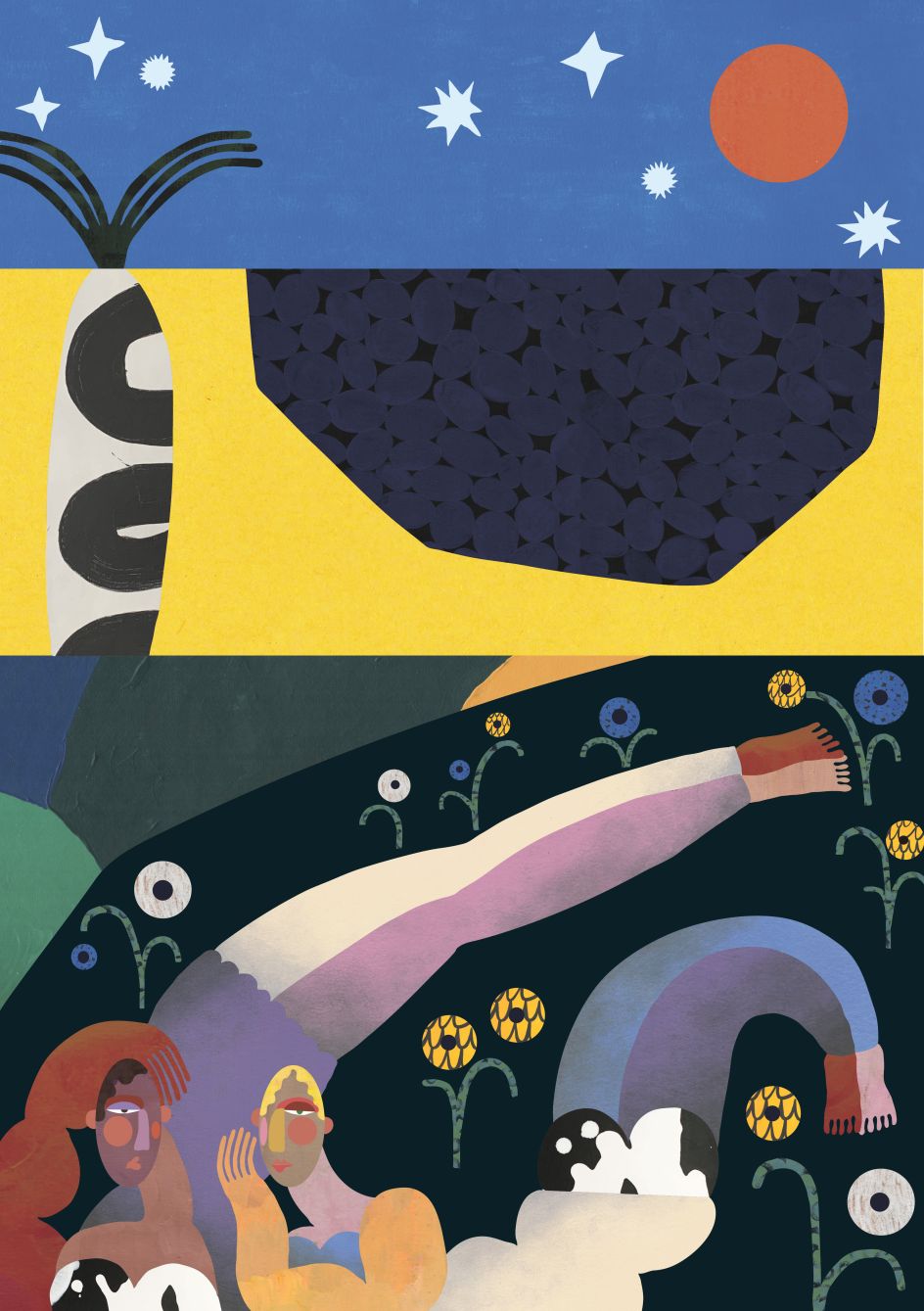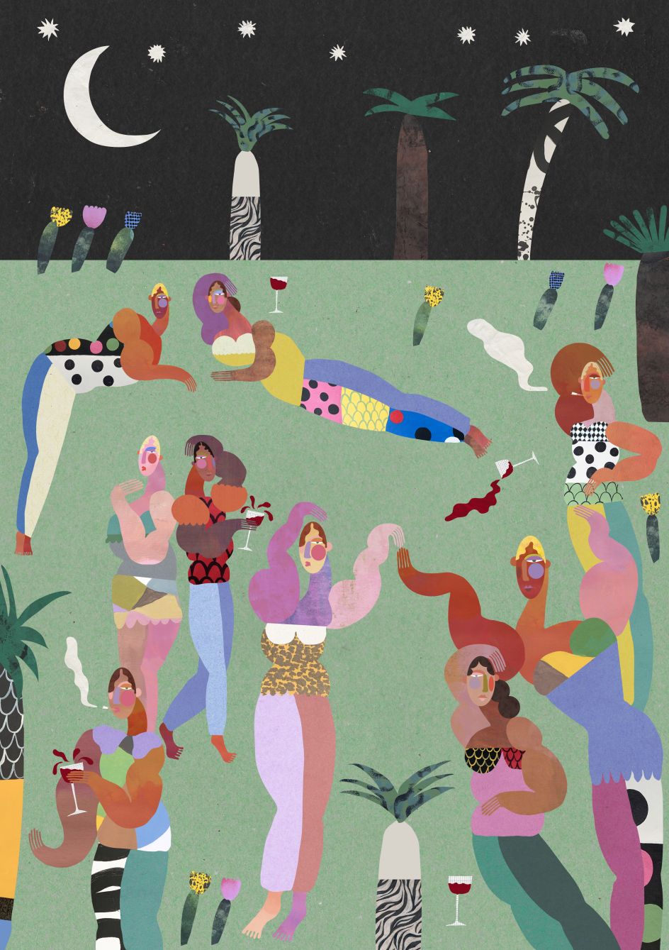 The work of Manchester-based illustrator Imo Crossland is instantly recognisable thanks to its dynamic shapes, textures appearance, and in-your-face colours. Described as a celebration of joy and togetherness, her art is said to be an encapsulation of what it means to be alive.