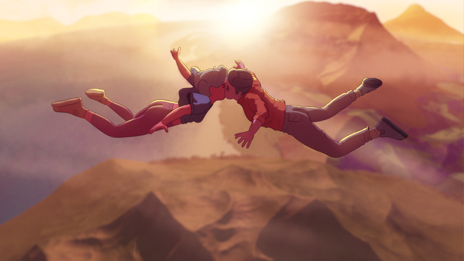 As these experiments suggest, In Love was something of a creative journey, and the team learned a lot along the way, specifically on the technical side. "One of the most challenging moves we pulled off was circling the characters as they kiss while free-falling through the sky," says Christine. "It required a complex 3D camera rig that allowed us to move and rotate on multiple axes at high speed.