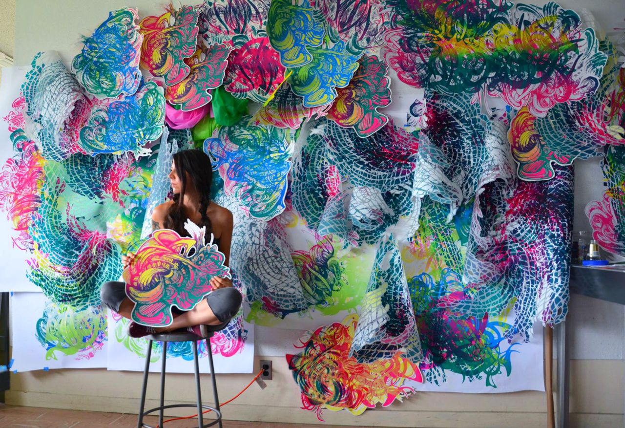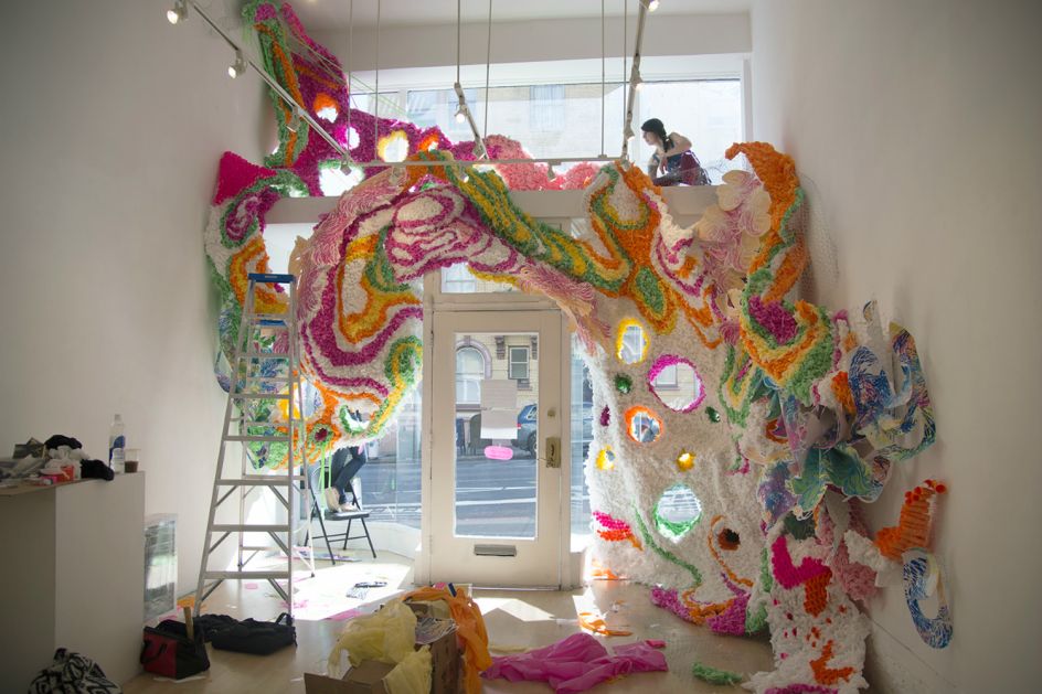 Influenced by her extended stays in natural parks—Yellowstone and Joshua Tree, notably—Wagner’s two and three dimensional works alike recalls such natural occurrences moss groves and dense forests, but rendered in an imaginative, bright, and neon palette. Discover more at www.crystalwagner.com.