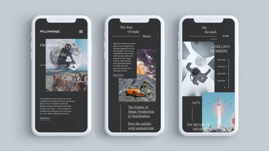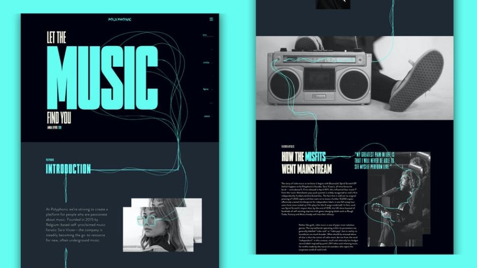 Tom Carling is a graphic designer based in Middlesbrough and a graduate of Shillington Manchester. For his digital presentation of the music platform Polyphonic's annual report, the landing pages (headlined 'Let the music find you') suggest Polyphonics' superior capability of bringing undiscovered eclectic treasures to the fingertips of their users. This is visually represented by sound waves travelling down the site, 'finding' individuals as it goes whilst also guiding the reader through the report.