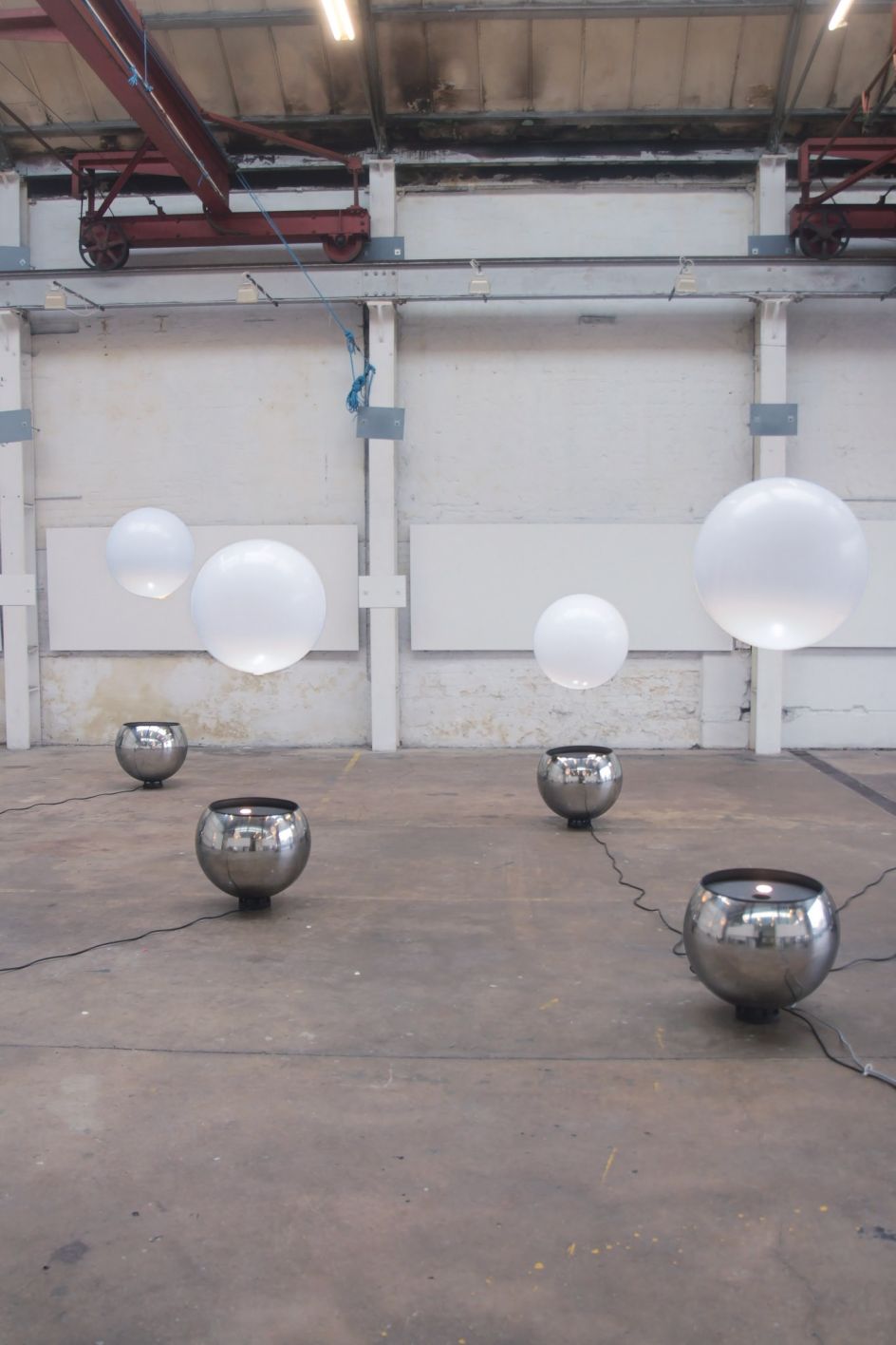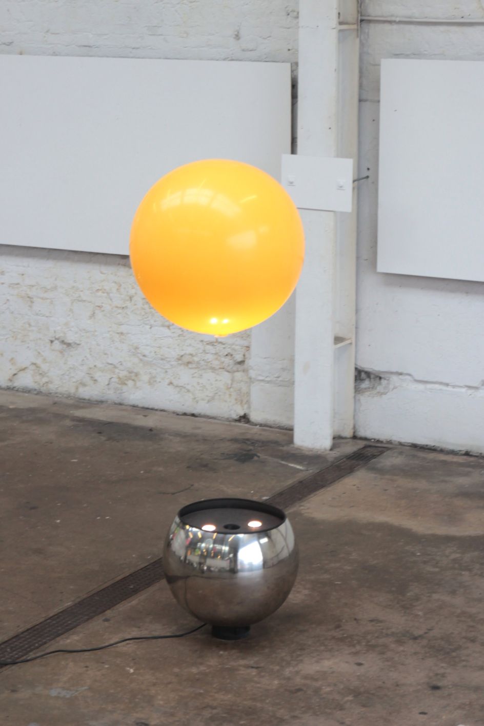 Each ‘Thought Bubble’ base is made from a polished stainless steel sphere, housing wirelessly controllable large air generators and lighting. They float orbs around 70cm in diameter up to 5metres high on powerful jets of air. The base can be angled up to 45 degrees and the sphere will stay in the airstream and defy gravity.