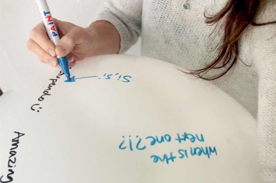 Harvey & John is a Brighton-based design studio, focusing on creating the world's friendliest interactive products. Thought Bubble is their interactive installation that invites you to play with giant levitating spheres. Initially coming to life as a playful reinvention of the office whiteboard, the product has since taken on a surprising number of functions. Thought Bubble can be used as ambient uplighting, levitating signage or as part of an immersive stage performance.