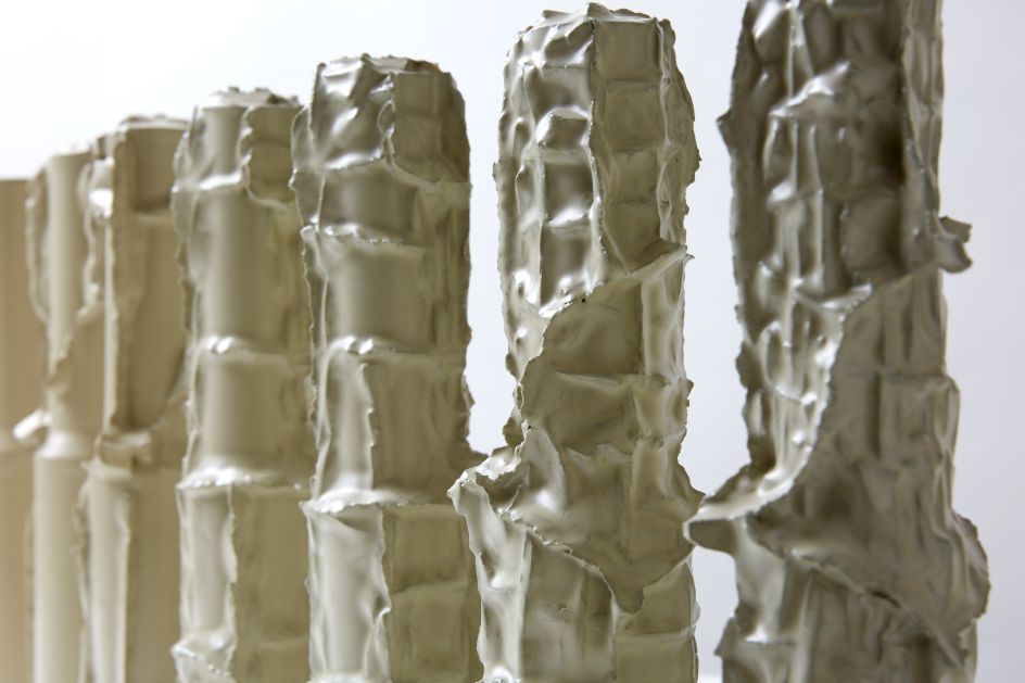 A fascination for ‘uncommon beauty and the unexpected’, leads Irina to alter her works during glazing, with control of the initial shape of each piece progressively let loose, allowing the structure to evolve independently inside the kiln. “I try to avoid dynamism in my work, favouring symmetry. I like that the meaning of my pieces isn’t taken for granted and that they are animated by their own inner life”.