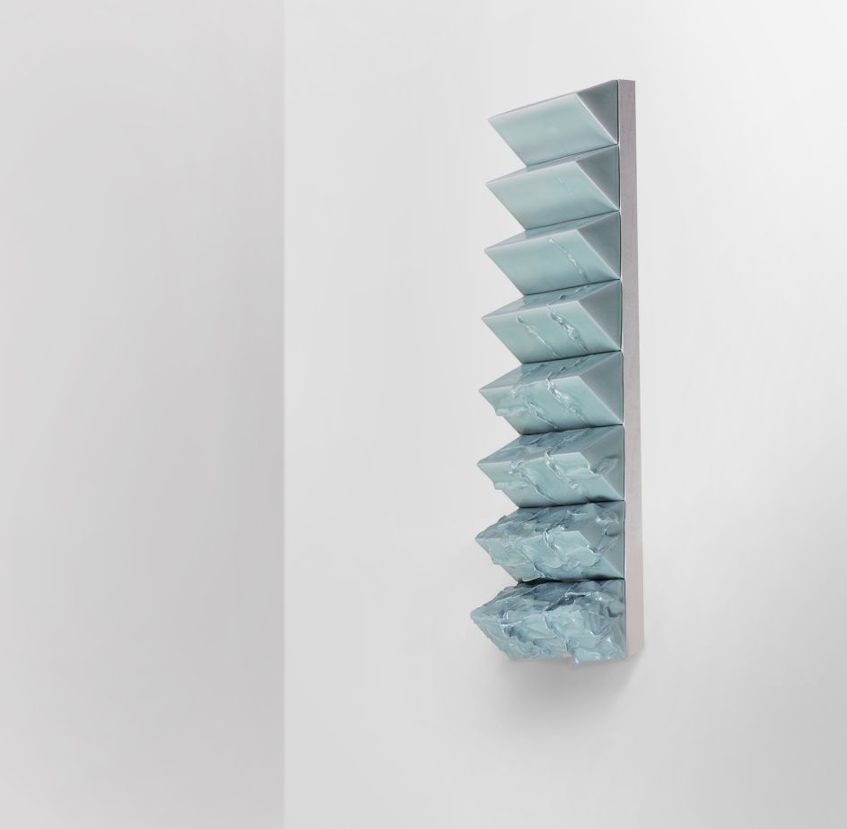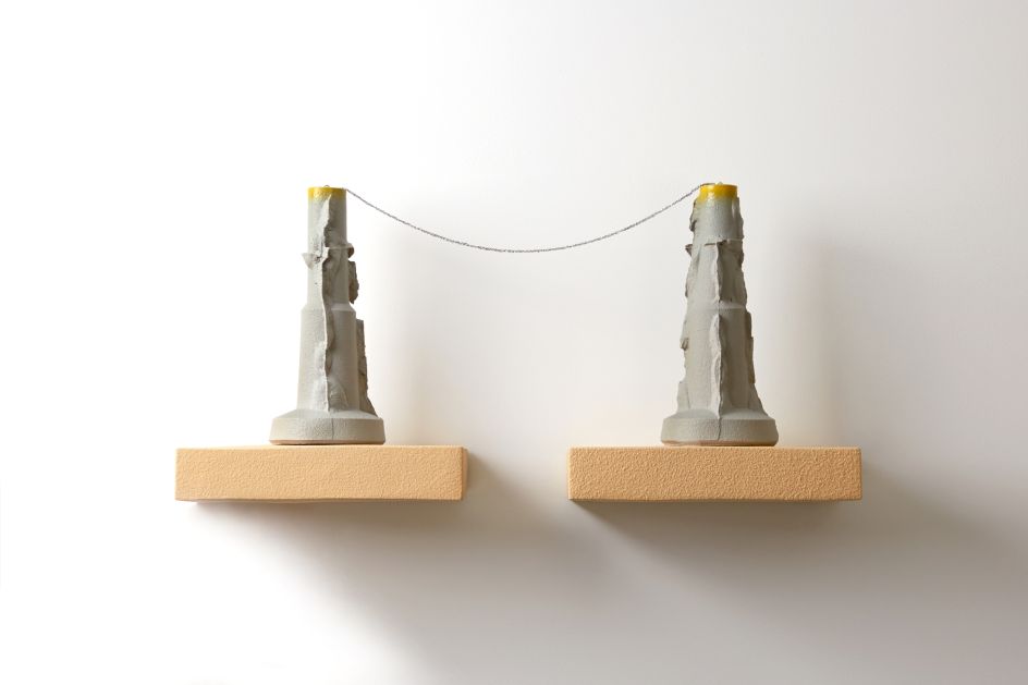 For her sculptures, Irana combines sandblasted ceramic shapes with layers of glaze and rough concrete surfaces to evoke the decay of architectural structures, with dusty colours, layers of peeling paint and crumbling stone.