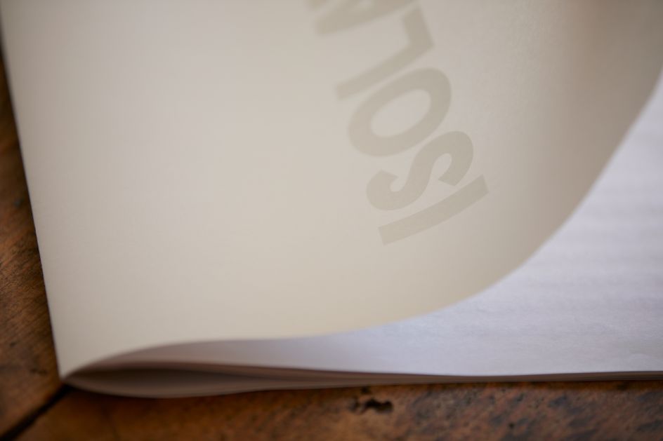 Flicking through the pages, you realise the text is quite different. Oliver Wigglesworth explains: "To communicate the sense of isolation that we're living through, we printed all the text on the reverse of the pages, so there's a visual barrier distancing you from the words."
