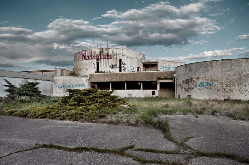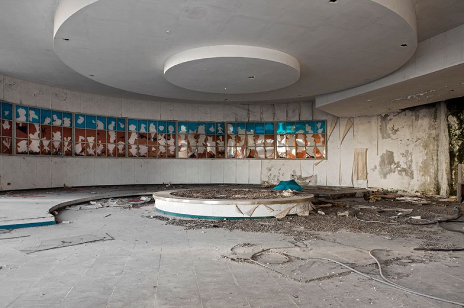 He photographed nine former nightspots as part of his project. Of his work, he said “Discotheques, the symbol of '80s and '90s hedonism, were fake marble temples adorned with Greek statues made of gypsum, futuristic spaces of gigantic size, large enough to contain the dreams of success, money, fun of thousands people. And then the dreams are gone, people disappeared and nightclubs became abandoned wrecks, cement whales laid on large empty squares, places inhabited by echo and melancholy.”