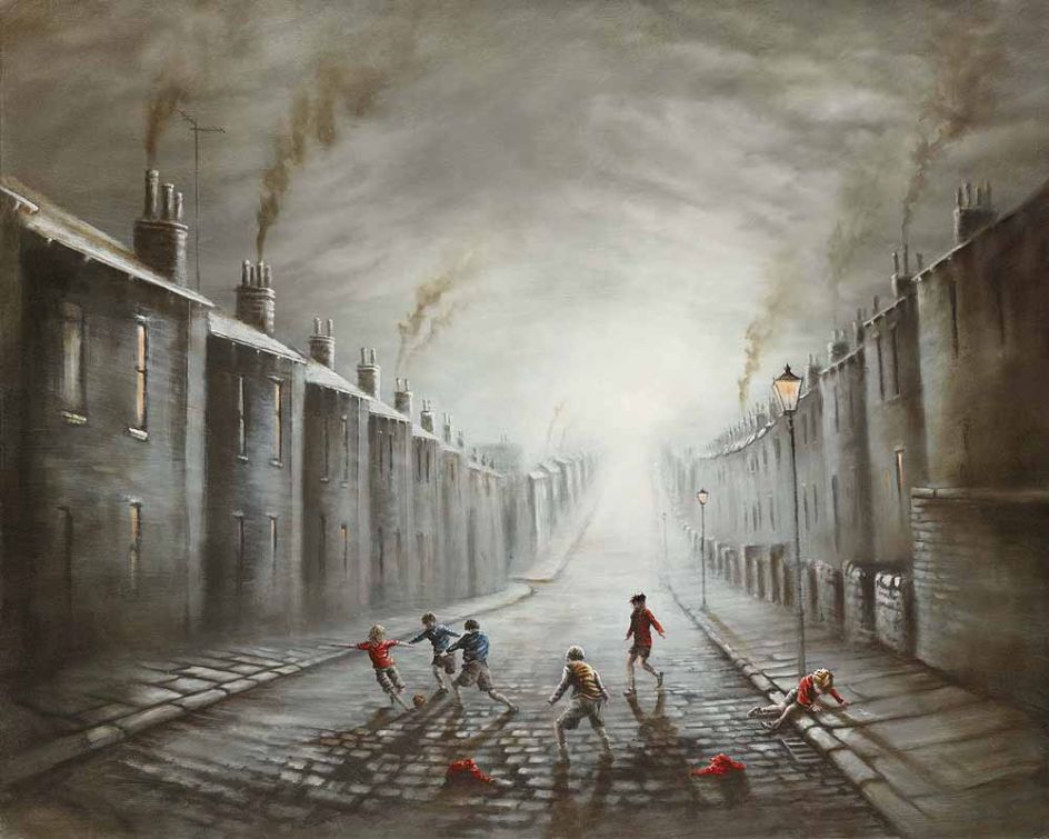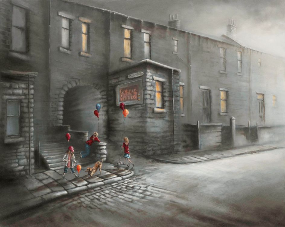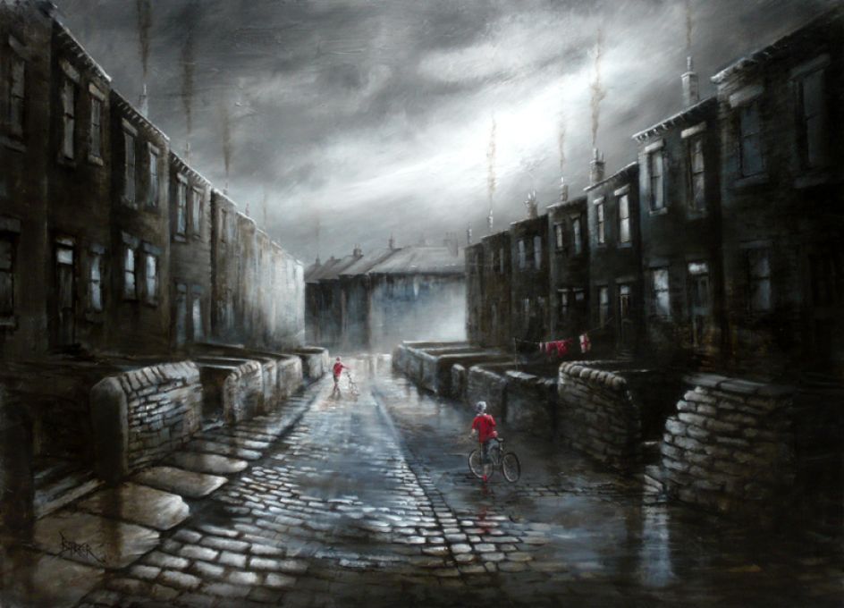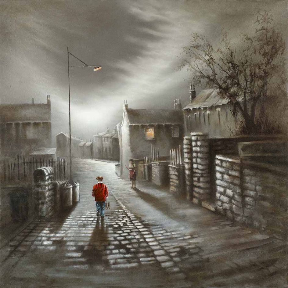 As a Yorkshire man born and bred, nostalgia spurs him to paint by looking back to childhood memories with adult eyes. Memories of the mill his mother worked at as a weaver form a big influence in the images he paints now, as does the industrial footprint left in the Yorkshire mill towns. Bob has always maintained that where most people see soot-blackened stone and polluted skies, he sees colour - like wet Sienna cobbles and Prussian blue shadows with burnt umber and cadmium skies. Bob views Yorkshire in the subtle blended hues of his paint box, and through his art, he invites the viewer to do the same.