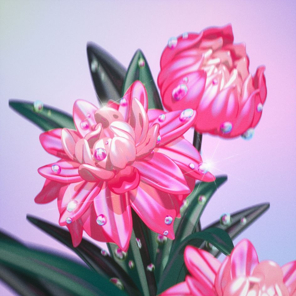 All of these observations come together to create a series of images that are both still and dynamic, mysterious yet familiar. Everyone can relate to the imagery of dew forming on a flower petal, but when depicted in Jaenam's signature style, this common human experience is warped into something new, something that causes the viewer to pause for a moment.
