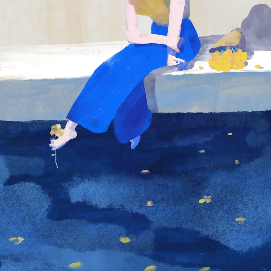 Whether they're capturing a flower-strewn foot dipping a toe into a river, a boy with a green pencil being studied by his classmates, or a woman making time for a quick smoke on a sofa, Jason's illustrations capture the little moments in life that are all too easy to overlook.
