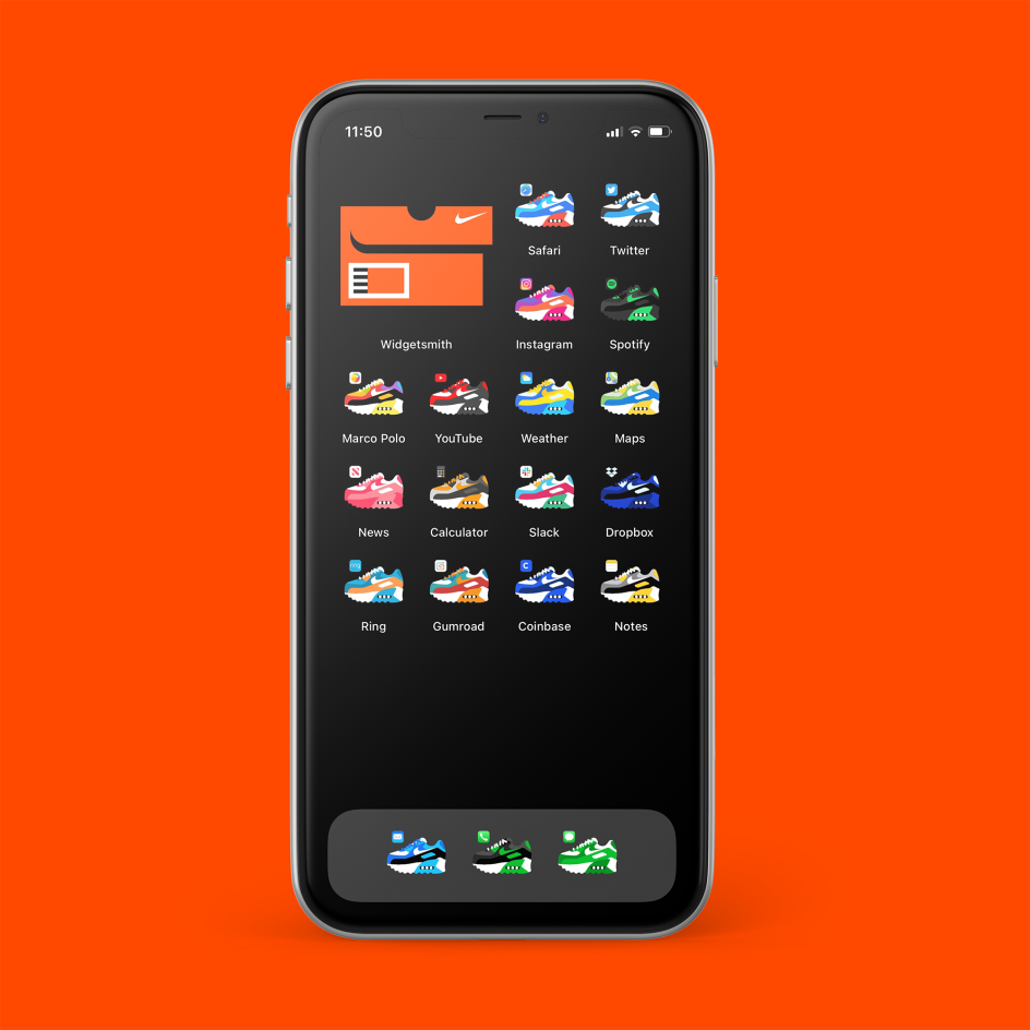 He's just released two packs where you can transform your apps into vinyl records or classic sneakers. Apps for Twitter and Instagram transform into clever album sleeves which take cues from the social platforms' logos, or classic trainers of the Nike Jordan 1 or Nike Air Max variety.
