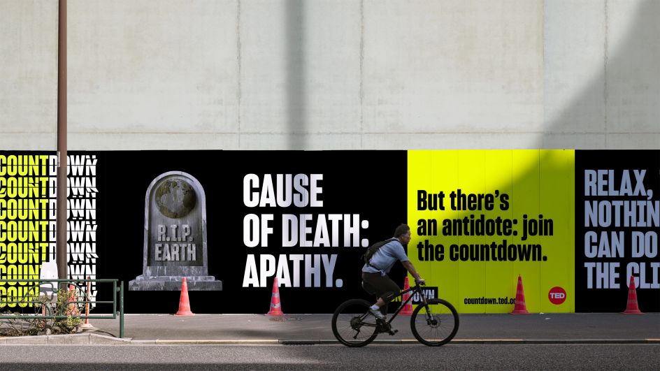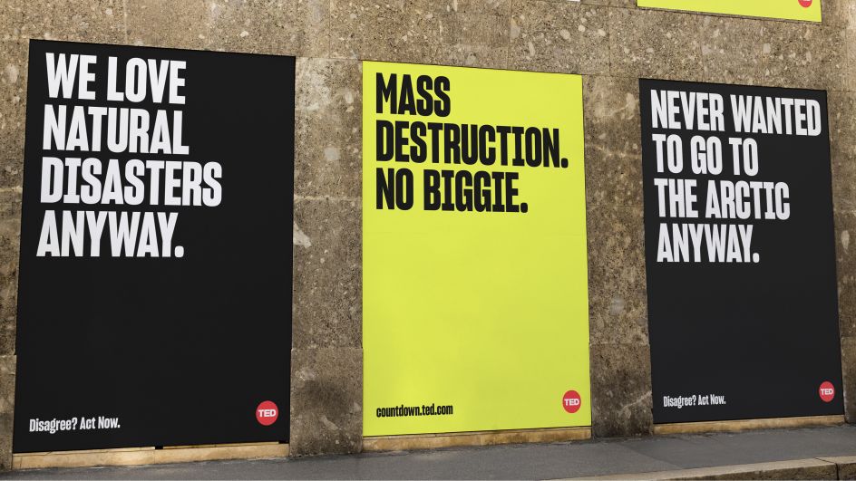 The campaign by &Walsh began last year with alarming and shocking messaging like "We give up" or "We love natural disasters anyways". With TED being behind the campaign, the New York agency felt it would be "hard to ignore these messages". Following on from this approach, &Walsh then created messaging that inspires people to turn their fear into action, saying: "We want people to know it's not too late if we act now."
