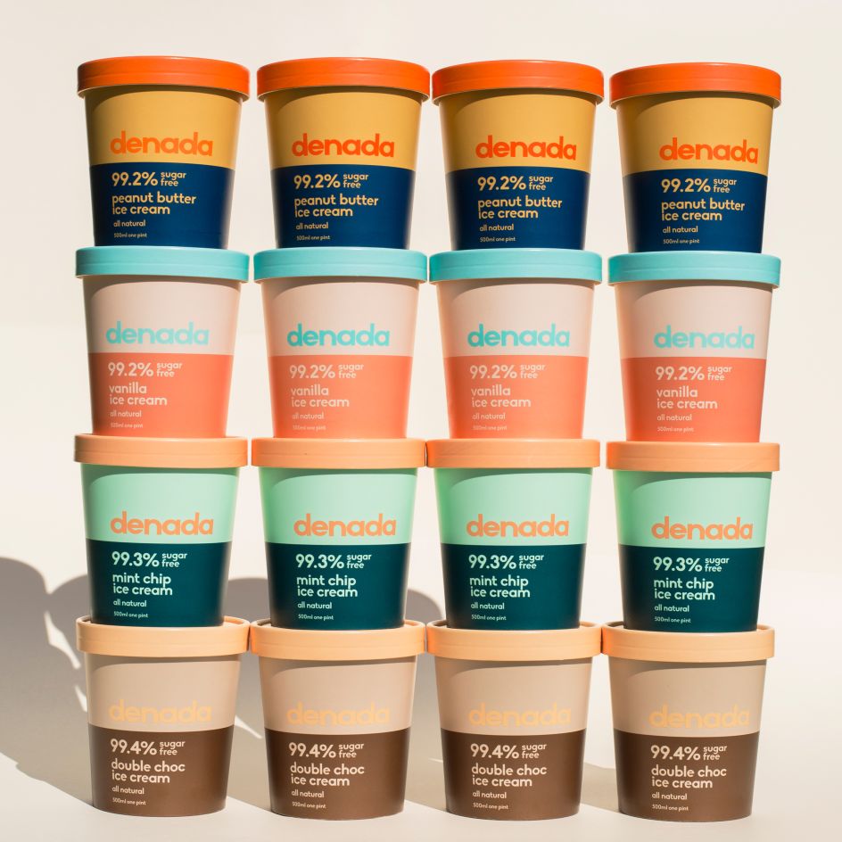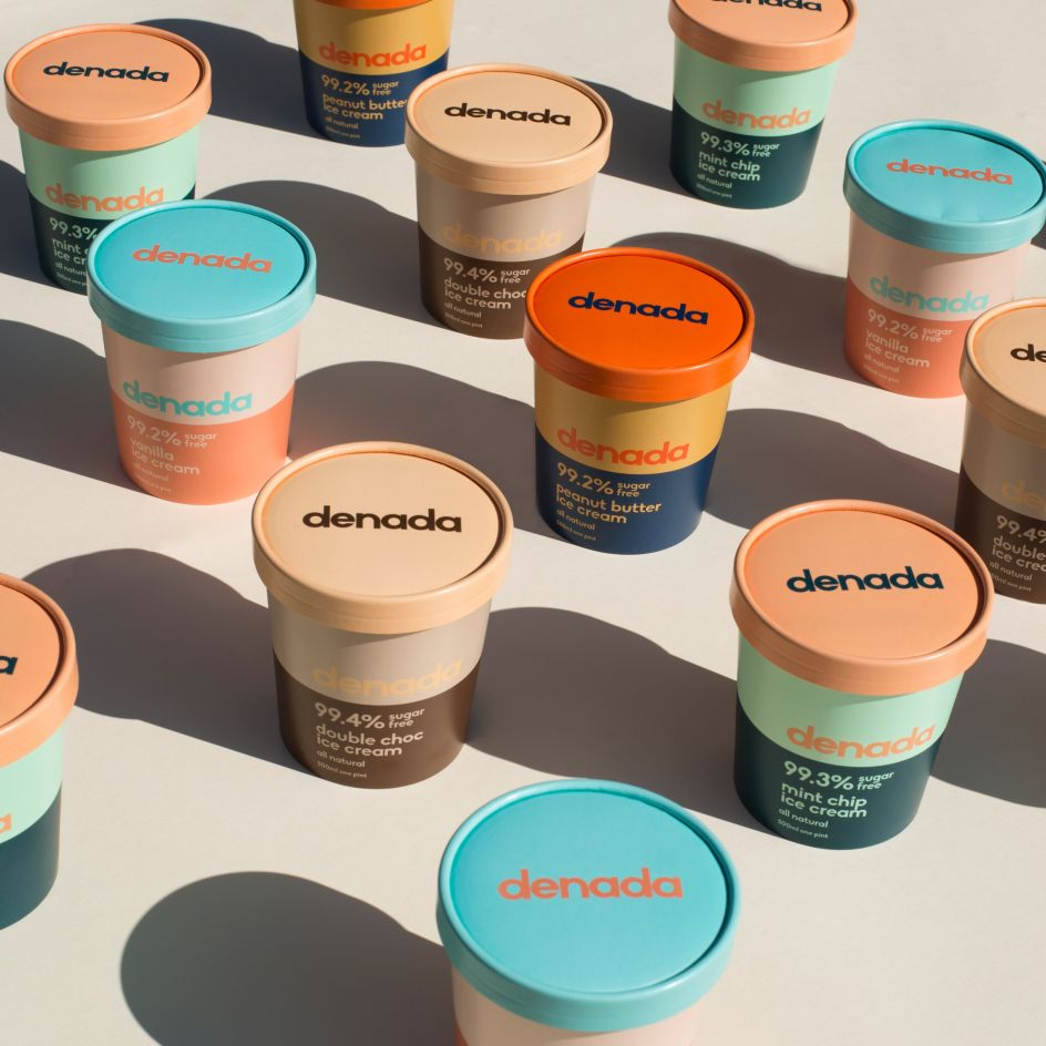 Jo Cutri Studio is behind these simple, joyful and very effective packaging designs for Denada Sugar-Free Ice Cream.