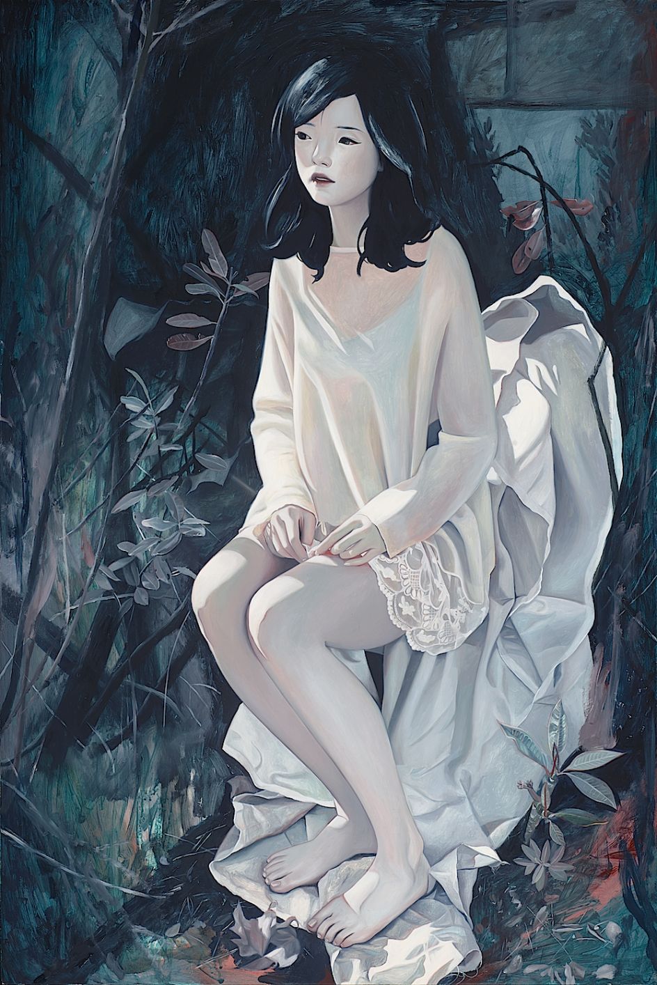 With a childhood spent in Korea's lush forests, Los Angeles-based artist Joanne Nam brings nature into all of her paintings of ghostly women.