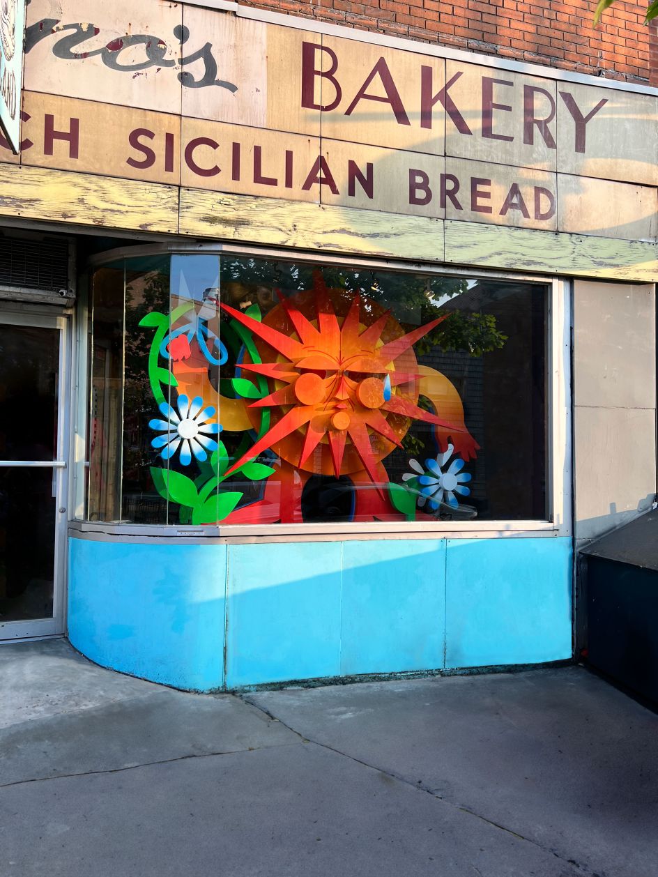 "The sun faces the street, the moon faces inside the shop. These dual aspects mirror phases inherent in the creative journey. They symbolise the initial pressure to begin, the feeling of potentially making a mistake, and eventually embracing that 'mistake' during moments spent in darker hours. These initially perceived errors often culminate in becoming the most cherished and integral parts of the creative work."