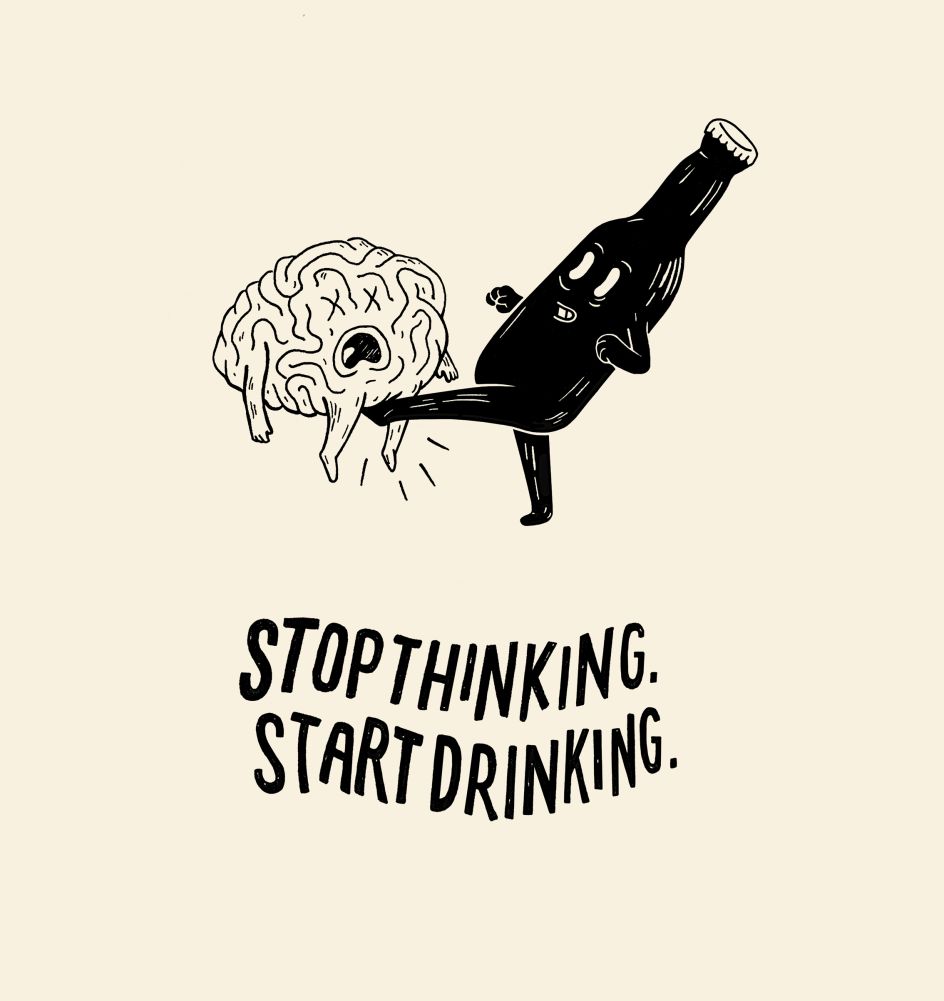 I'm also quite proud of the silliest of all of my illustrations: Stop Thinking Start Drinking.