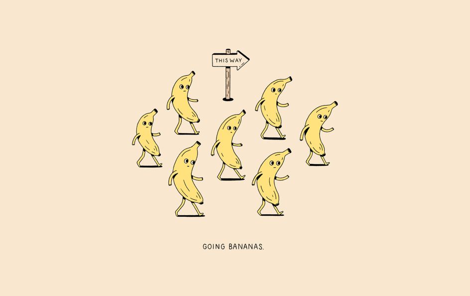 I created a very literal illustration titled Going Bananas that was inspired by how I was feeling during the pandemic at the time. It got passed around organically and a friend had told me that it made it to the front page of the /Art Subreddit. Because of this, I was inspired to start selling prints.