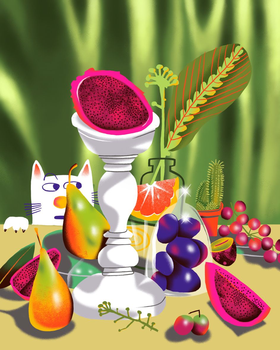 Jon Hanlan's unique style can be attributed to Picasso, Matisse, illustrators from the Mid-Century, as well as vintage cartoons. Full of quirky, often abstract features, his artworks include humorous and eccentric characters, engulfed in surreal and colourful backgrounds.
