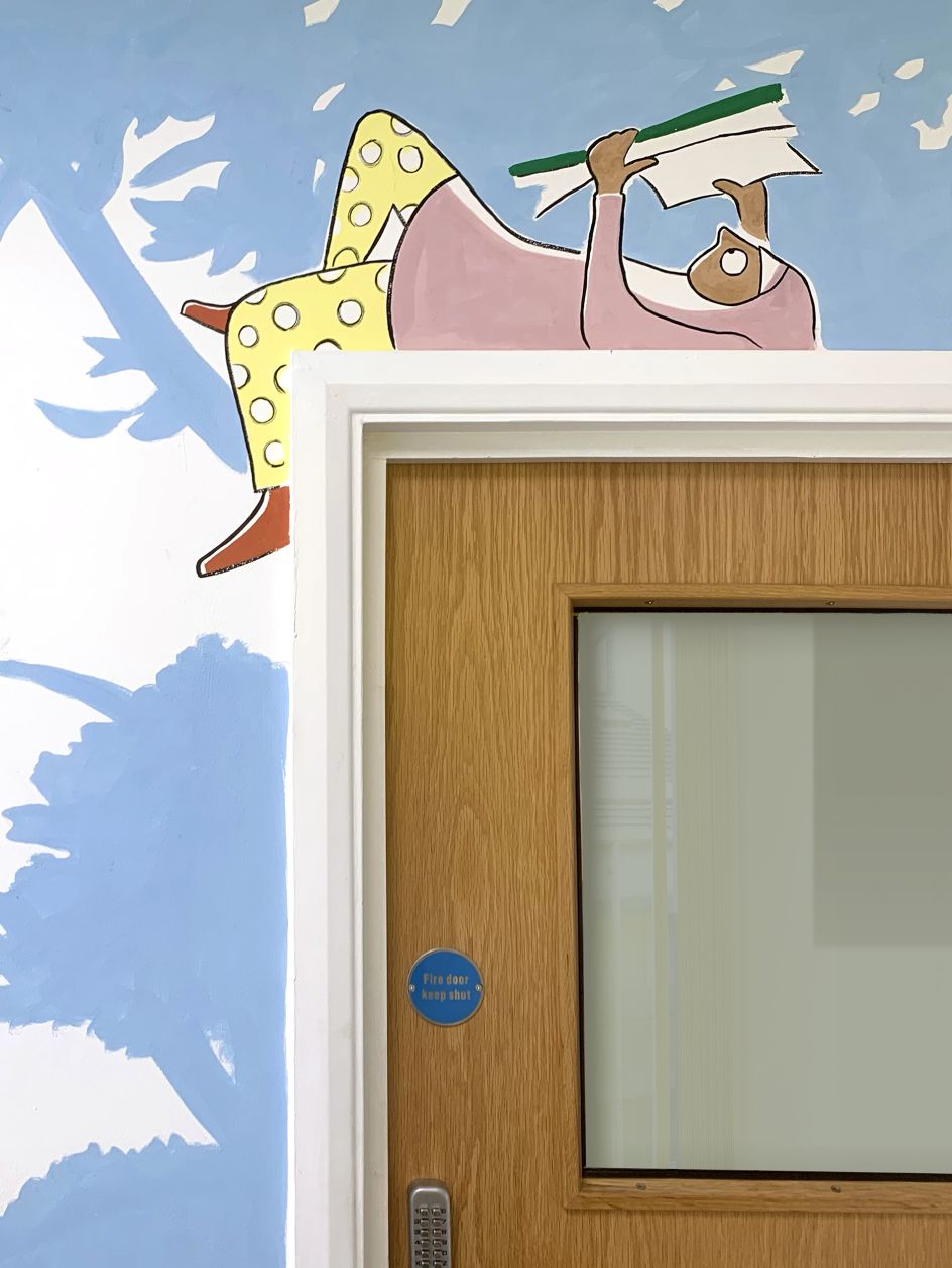 "I wanted to create a space that helped to give young people, who may be anxious at coming to CAMHS, a good first impression of the building – one that is welcoming and warm," Glover adds. "We visit hospitals and healthcare environments when things aren't going well and we want to feel better. NHS staff and the care they give are remarkable but the spaces we meet them in often don't reflect this. It was important to me that the mural helped to address this idea.