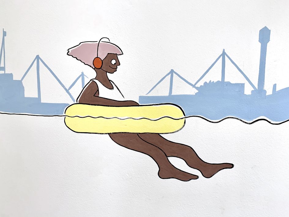 The ideas were then sketched up into a design that reflected the young people's life stories and lived experiences. The colour palette and spacious arrangement of playful characters were carefully chosen to give the design a calm and spacious, positive feel.