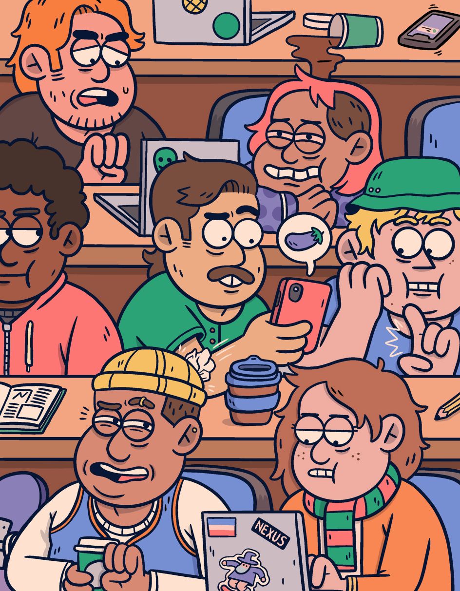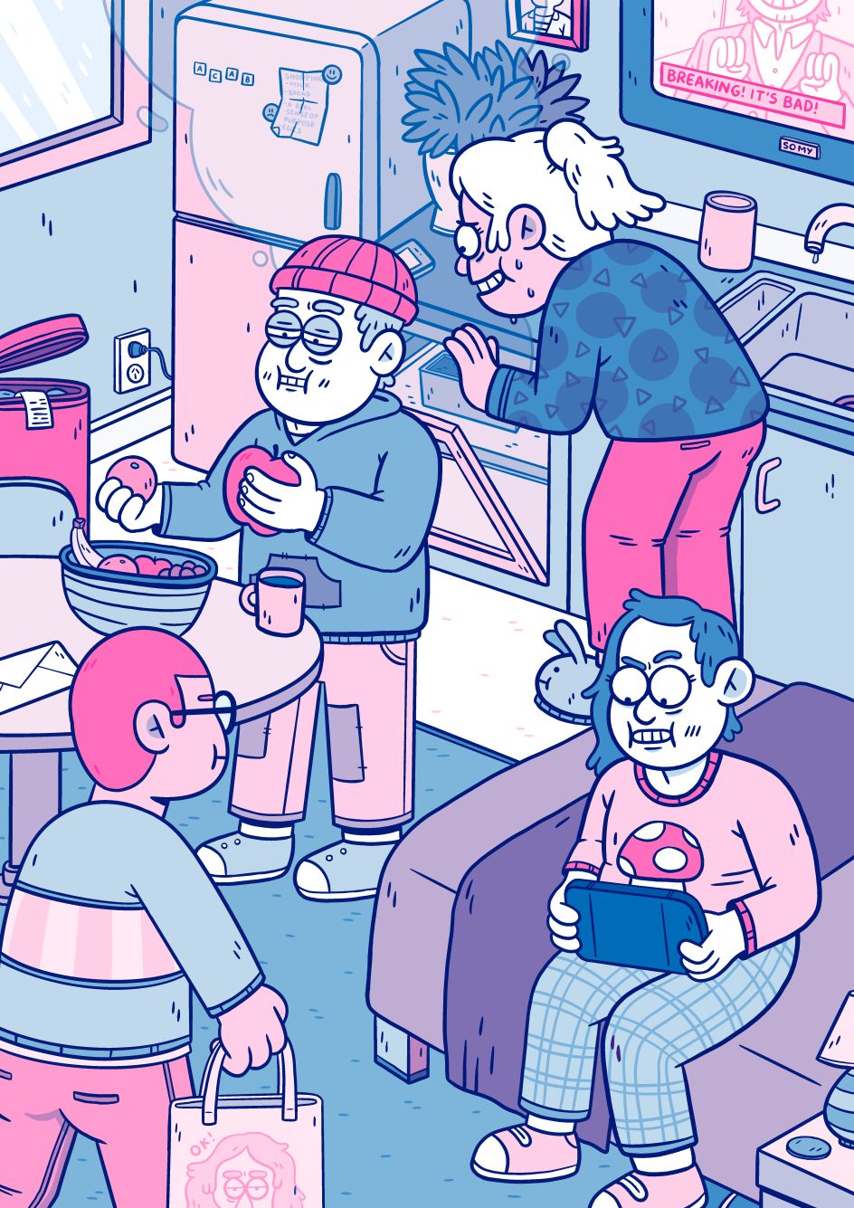 "My style is definitely inspired by cartoons I watched growing up, as well as illustrators like Kyle Platts and Nick Edwards. Mostly the thing that inspires me the most is making myself laugh, though. Most of my illustrations are just a series of terrible jokes crammed together until it looks like something."