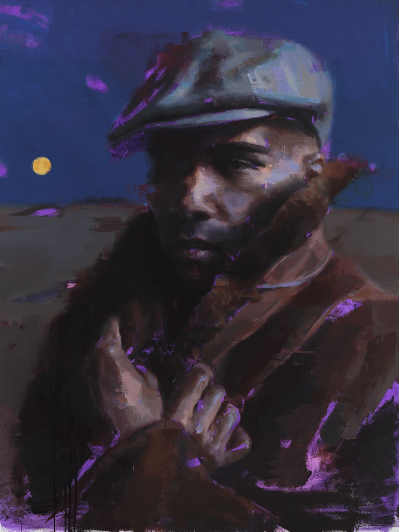 Jérôme has built a gallery of portraits throughout his career, with the majority of his models Brooklyn-based African-Americans. Sometimes friends, sometimes strangers, he observes and characterises the emotion and expressions in the people around him, using his distinctive visual aesthetic of expressive, wide stroke brushstrokes and deep colour tones.