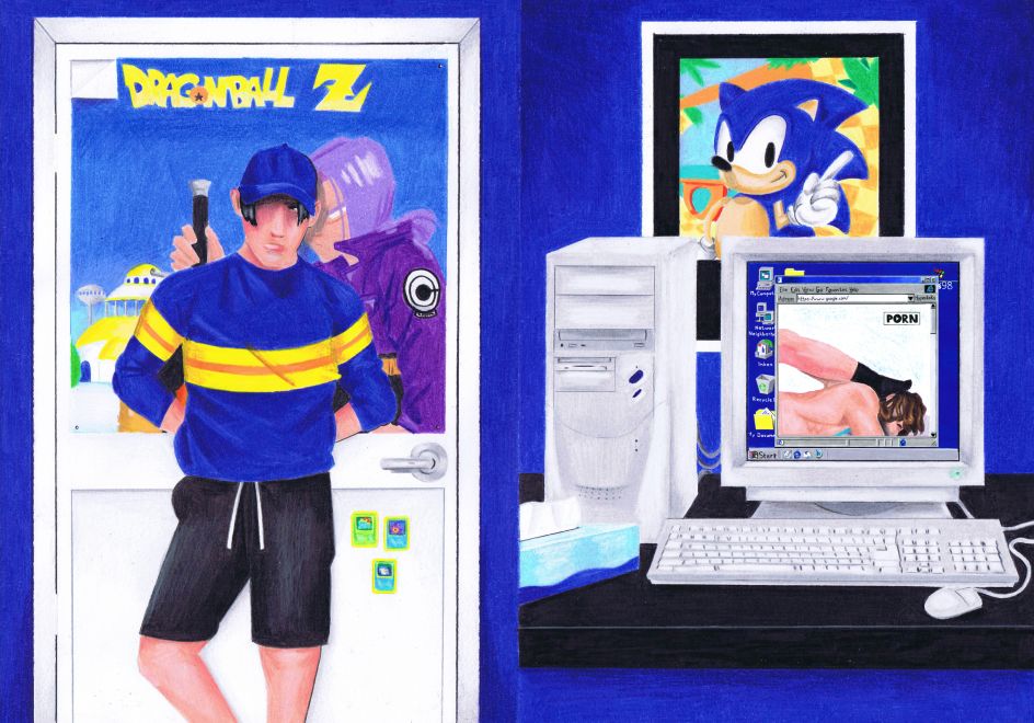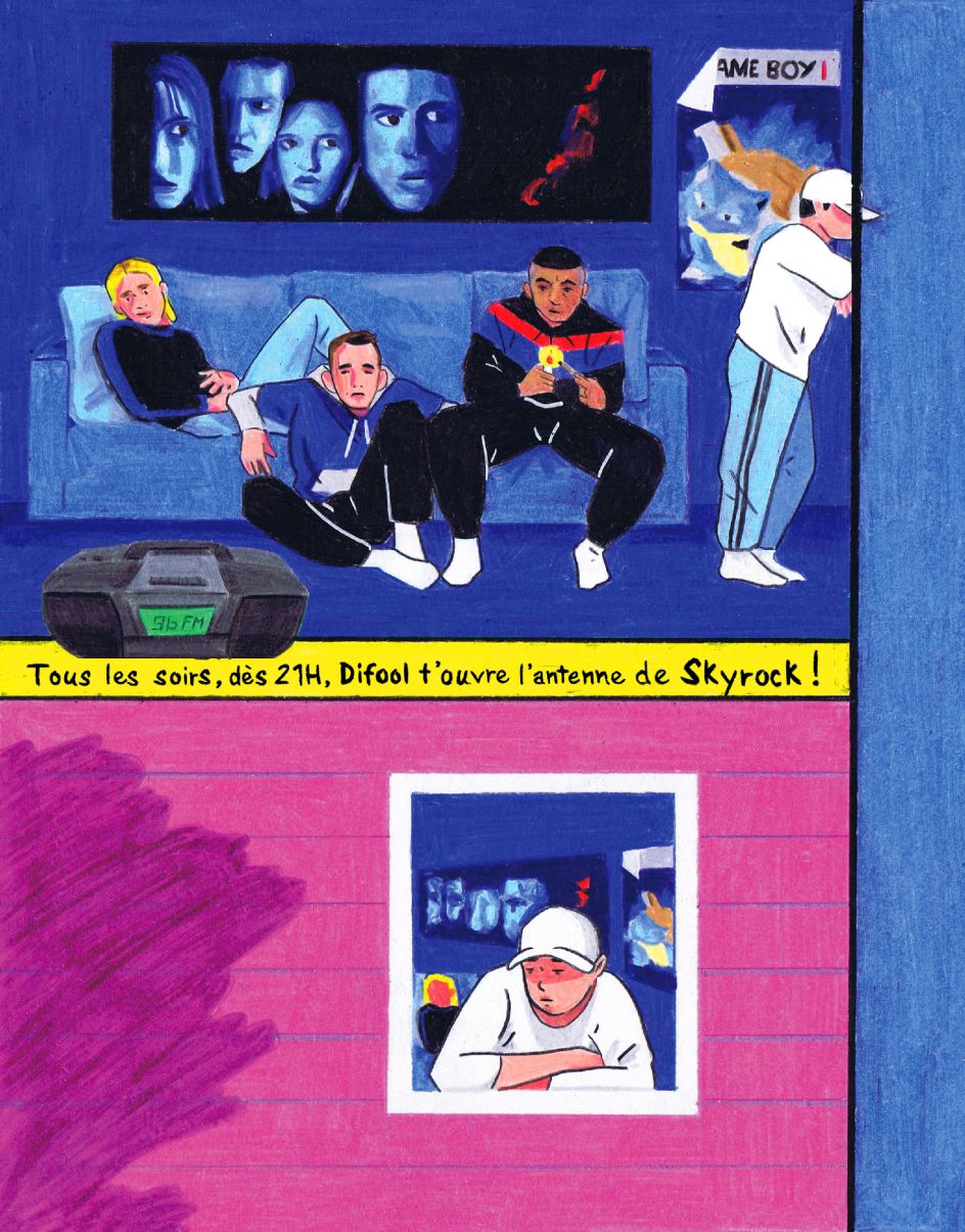 Everything in these depressing events spoke to him and informs his work today. There's also a strong feeling of masculinity – an exploration of male youth. "It's about trying to explain and analyse how young men act with each other, how simple things like playing video games, jerking off, being silent, bullying etc., can show so many things and how boys are stupidly raised to be boys only. And all at the time of teenagehood because everything is strong and new, therefore violent, and at the same time childhood and innocence are so close… I try to mix all those things to tell my own stories."
