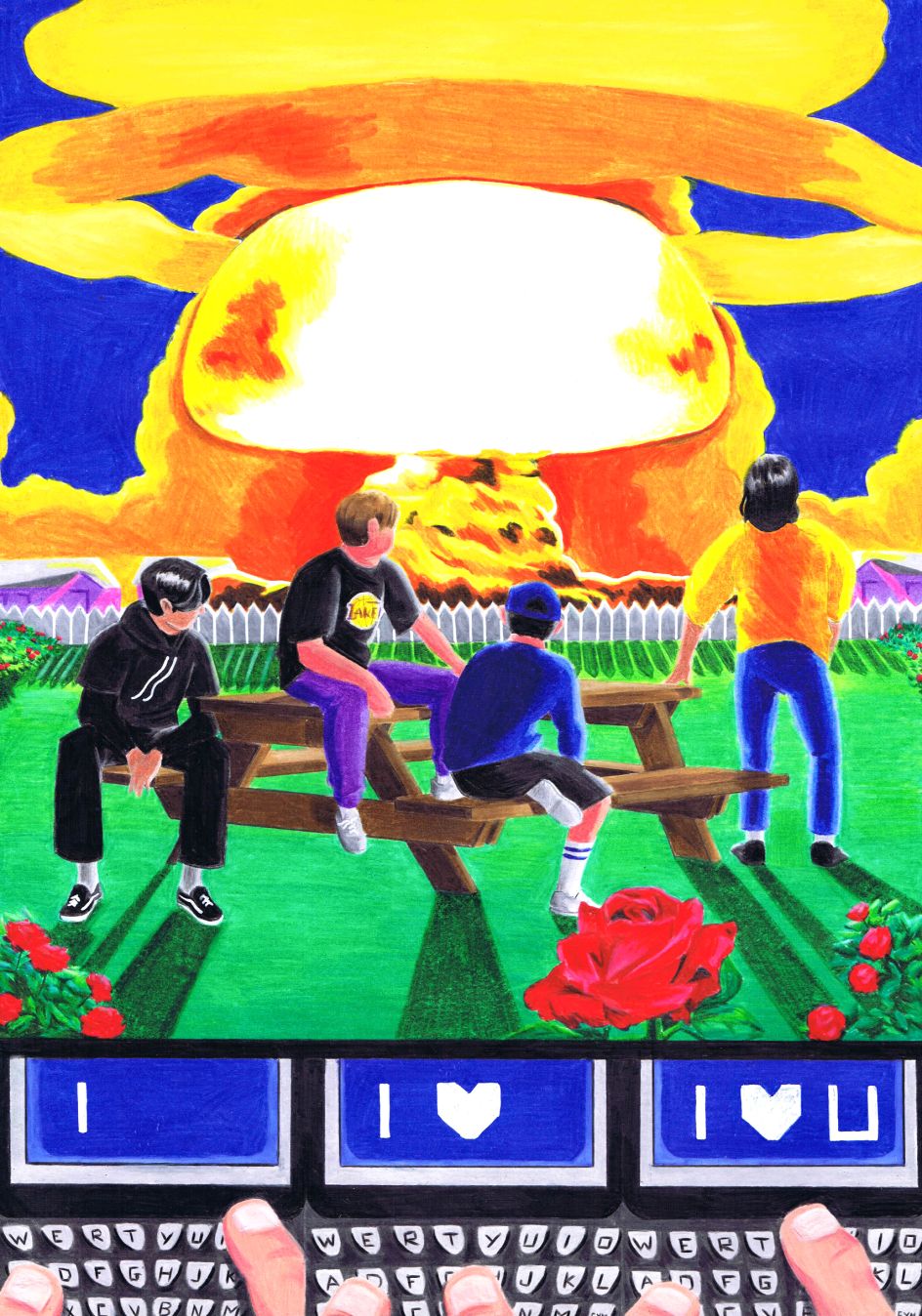 Jules Magistry blends a little anime, manga and comic book art to dream up his thought-provoking illustrations, all centred around the theme of adolescence, masculinity and violence.